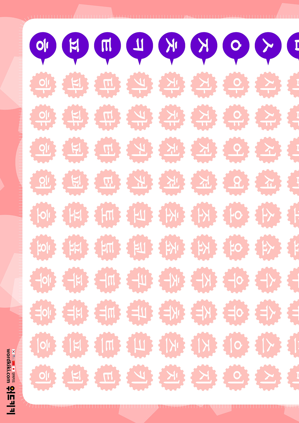 한글 음절표로 자음과 모음을 함께 공부해 보세요.