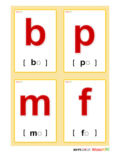 한어병음 중국어 성모 (声母)뽀포모포 카드를 보며 성모 연습을 해 보세요.