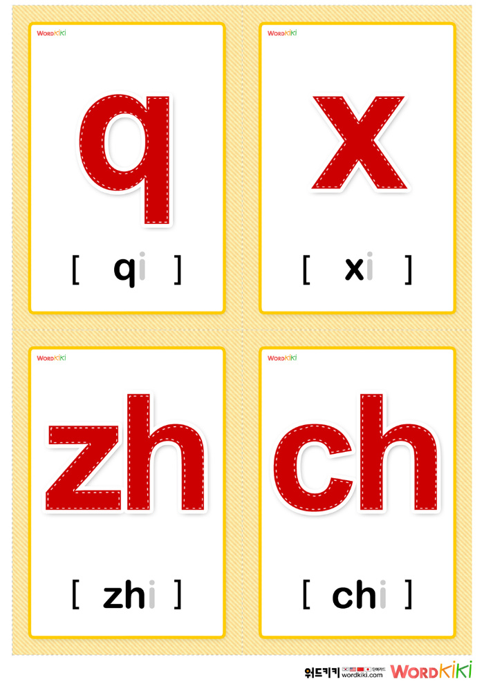 [성모카드 6장] 중국어 성모(자음)카드 – 4컷