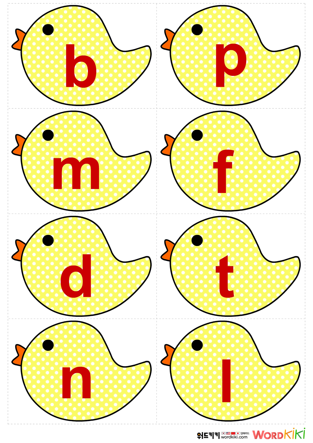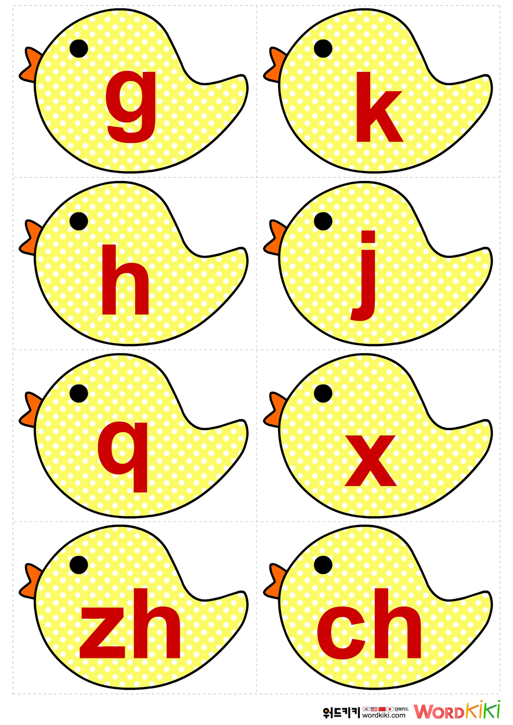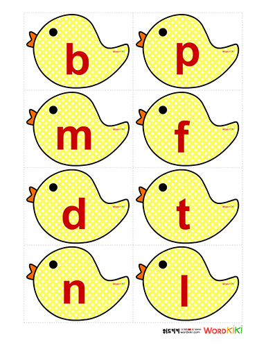 병아리 발음 카드를 프린트 후 중국어 발음 카드를 만들어 보세요.