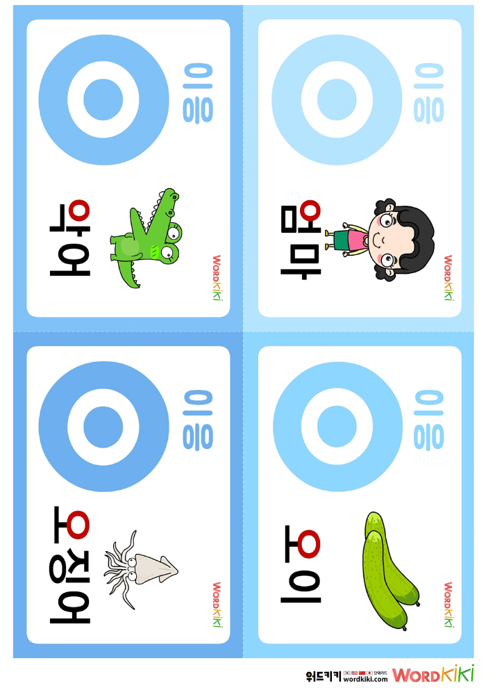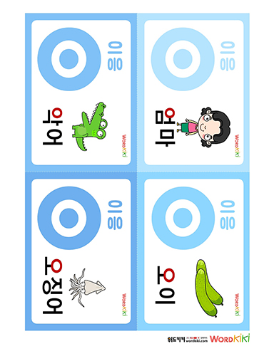 [키즈키키 자음카드 3장] 08 한글자음송 ㅇ – 이응송 단어카드, 단어 프린트 자료