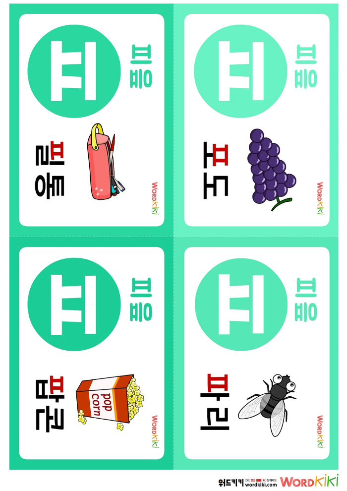 [키즈키키 자음카드 3장] 13 한글자음송 ㅍ – 피읖송 단어카드, 단어 프린트 자료