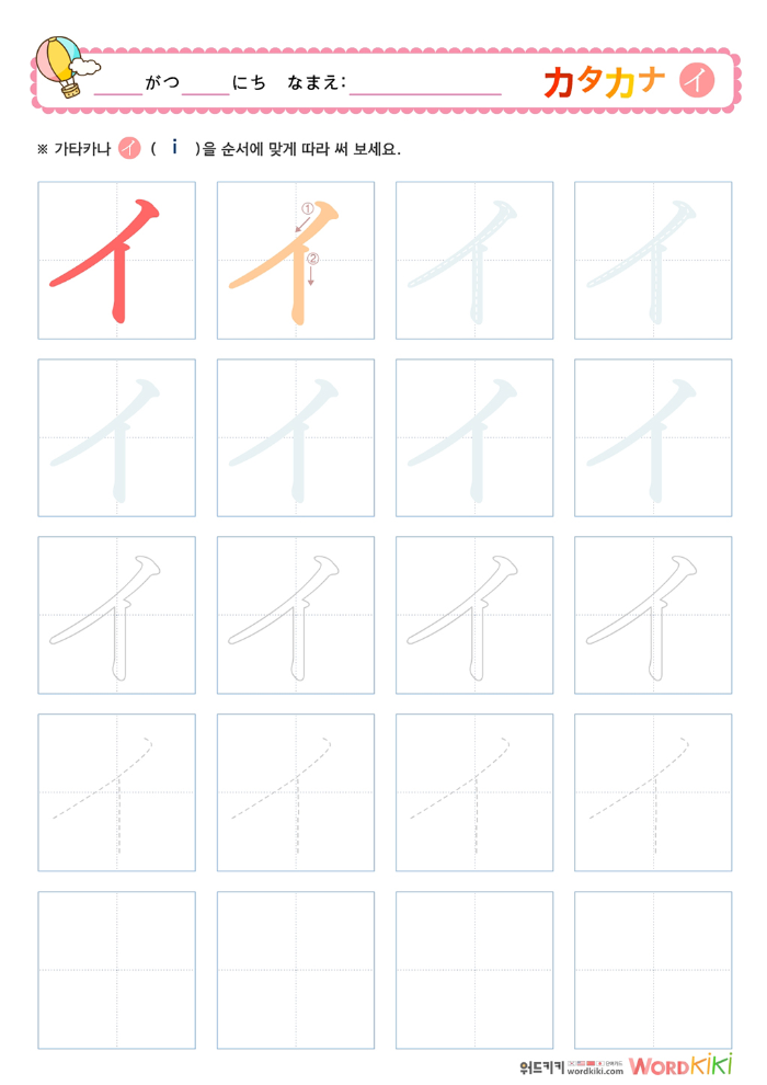 가타카나 따라쓰기/무료프린트학습지/가타카나 쓰기노트/일본어히라가나학습/일본어기초자료/유아일본어/엄마표일본어학습/Write katakana/Writing Japanese/learn Japanese for kids/hiragana katakana/hiragana flashcard/katakana flashcard