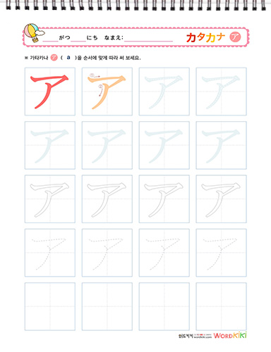 일본어 카타가나 쓰기 - 가타카나 아행 아 이 우 에 오