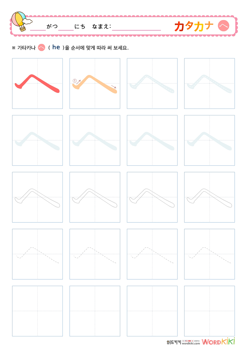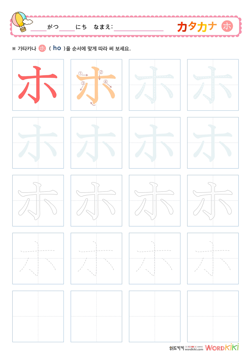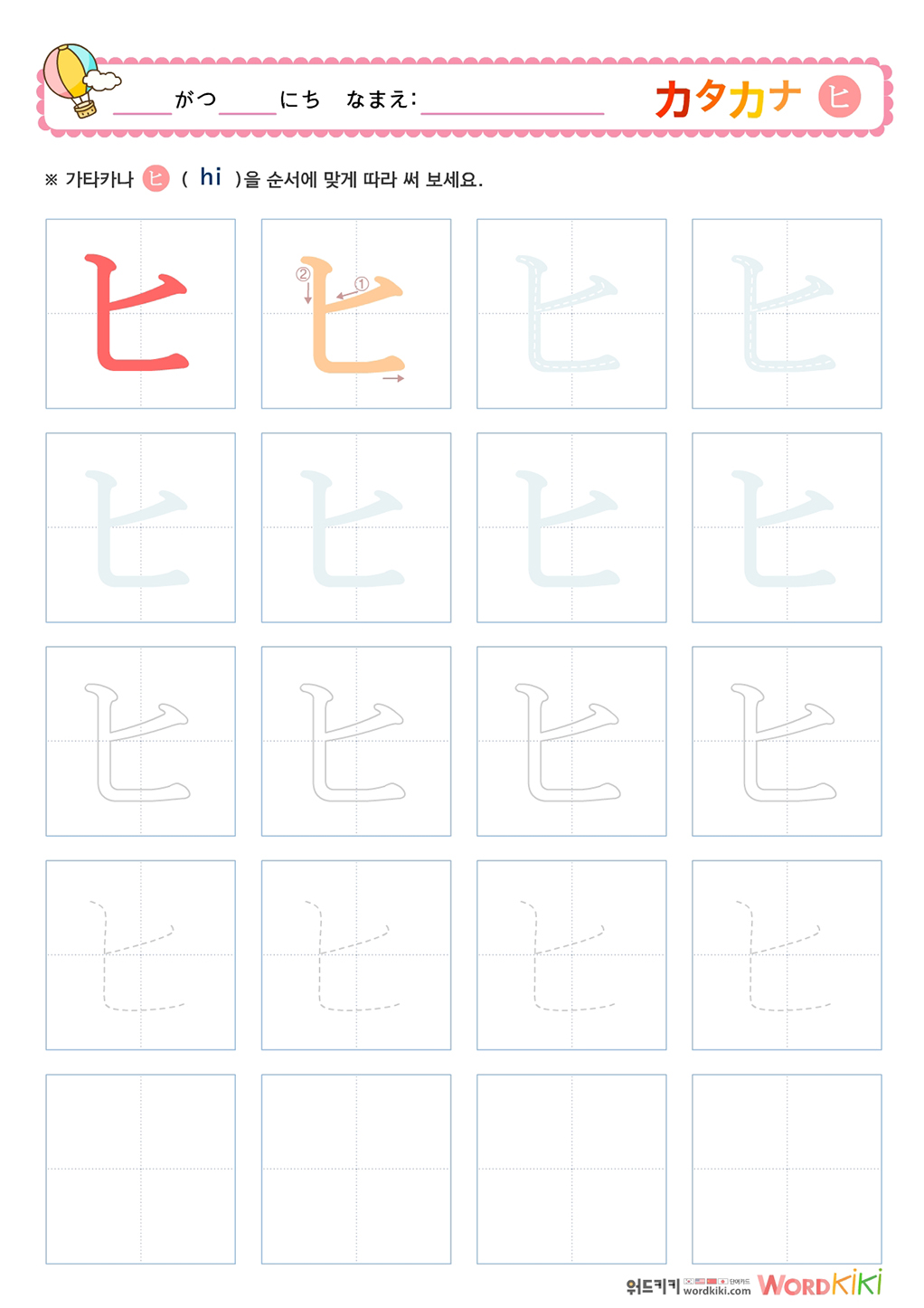 가타카나 カタカナ 따라쓰기 무료프린트학습지로 가타카나 쓰기 연습장입니다.