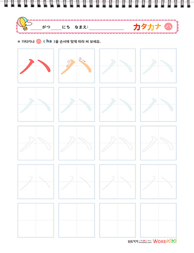 [카타가나 쓰기 5장] 일본어 카타가나 (하행) – Writing katakana ハ行