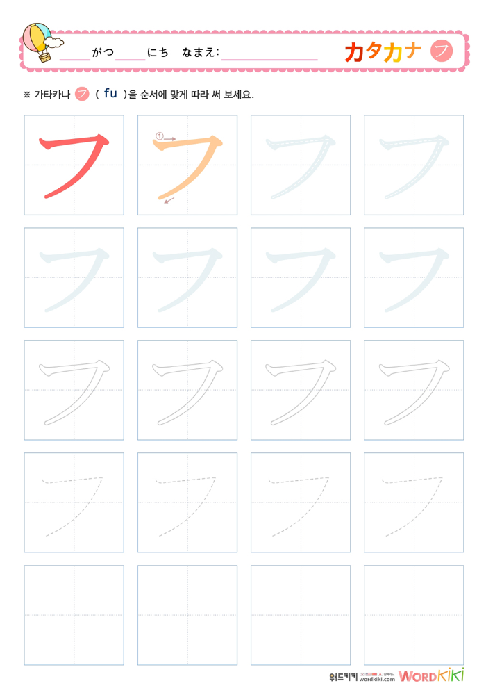 가타카나 カタカナ 따라쓰기 무료프린트학습지로 가타카나 쓰기 연습장입니다.