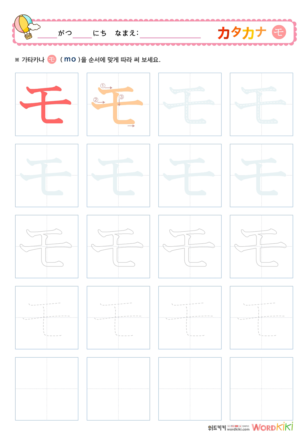 가타카나 カタカナ 따라쓰기 무료프린트학습지로 가타카나 쓰기 연습장입니다.