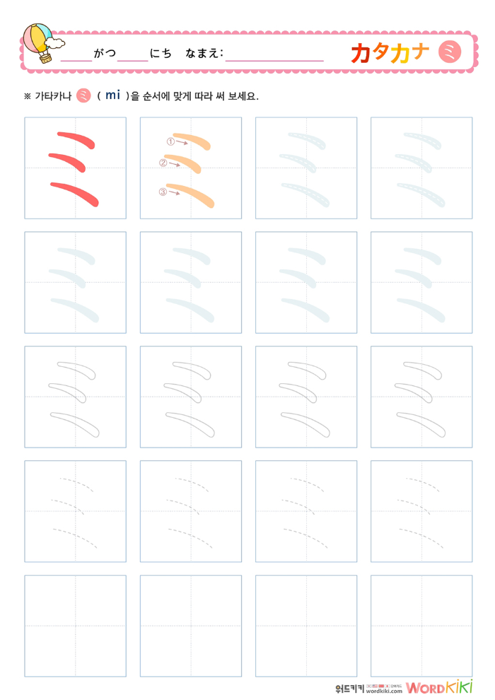 가타카나 カタカナ 따라쓰기 무료프린트학습지로 가타카나 쓰기 연습장입니다.