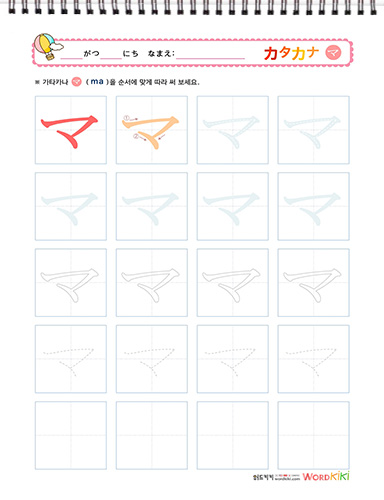 일본어 카타가나 쓰기 - Writing katakana マ行