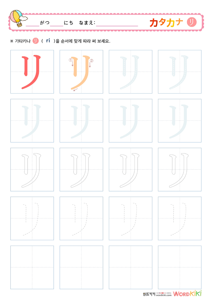 [카타가나 쓰기 5장] 일본어 카타가나 (라행) – Writing katakana ラ行