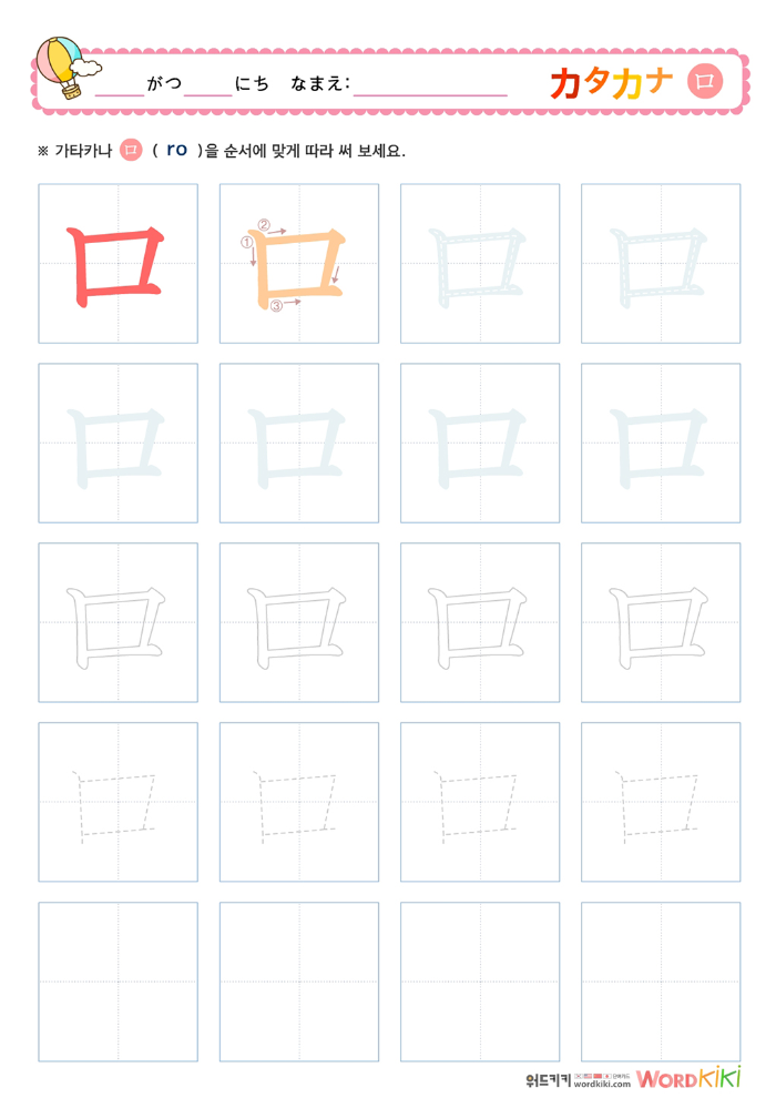 가타카나 라행 따라쓰기