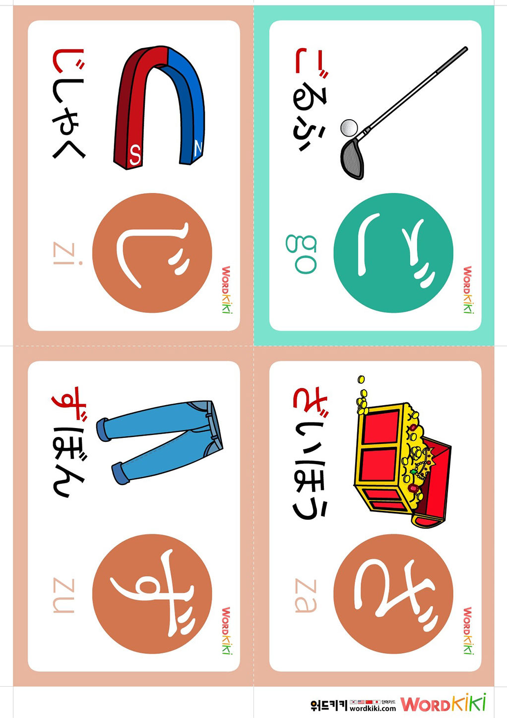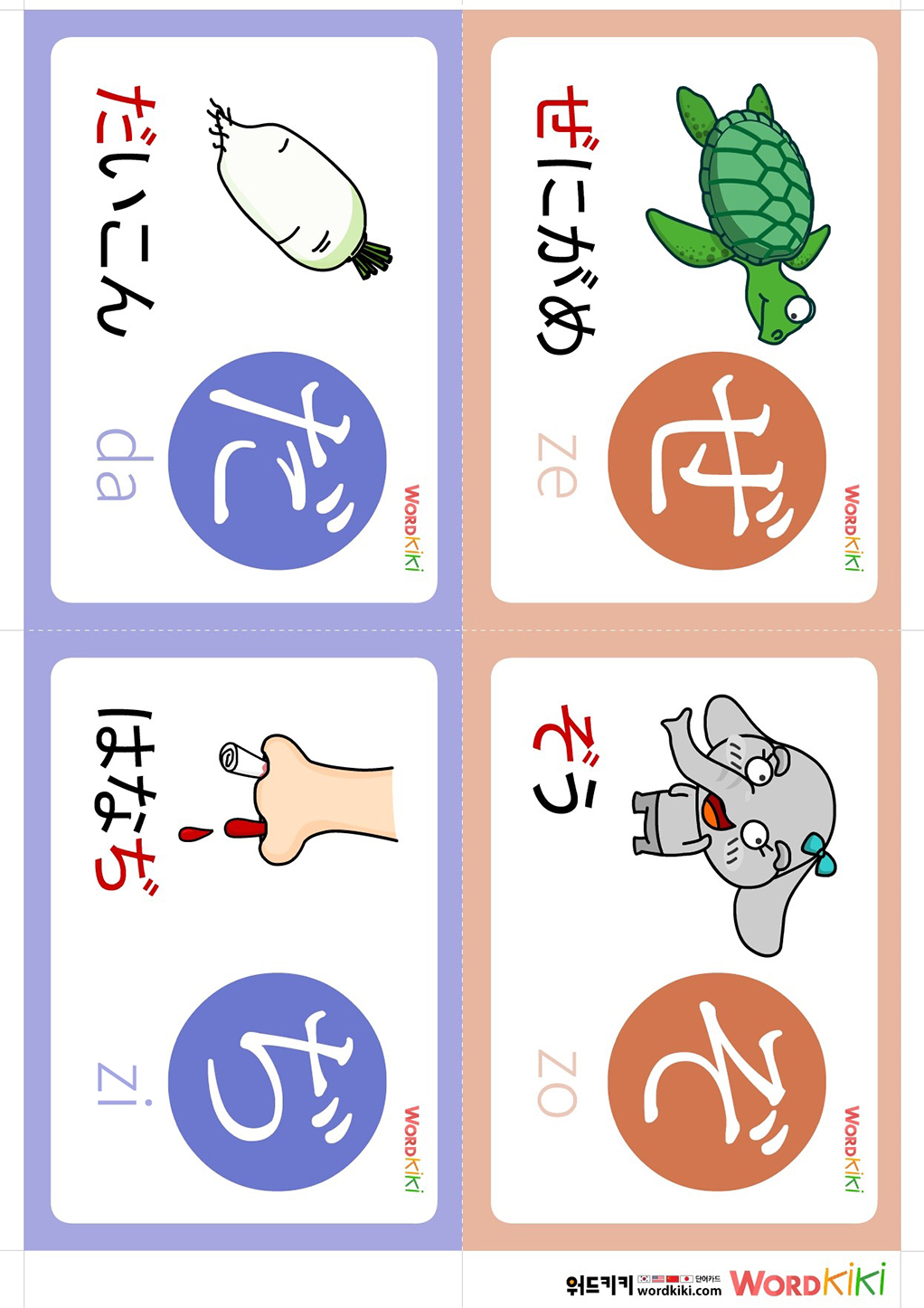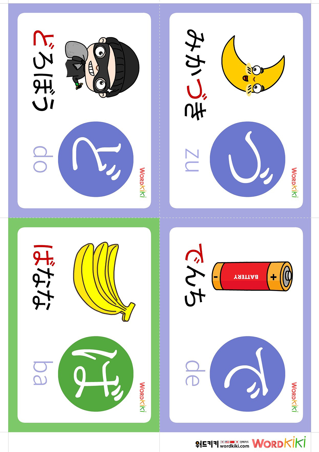 [히라가나 탁음카드 7장] ②ひらがな카드+이미지 플래시카드 4컷