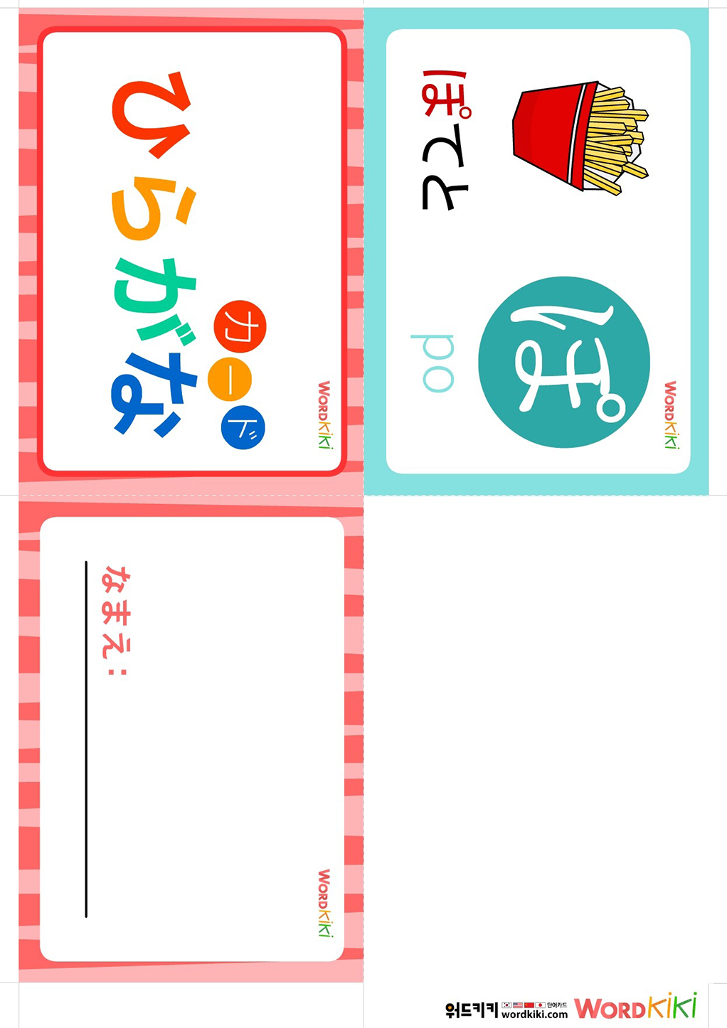 | [히라가나 카드 12장] ① 히라가나 이미지 플래시카드 4컷 (0) | 2024.03.27 |