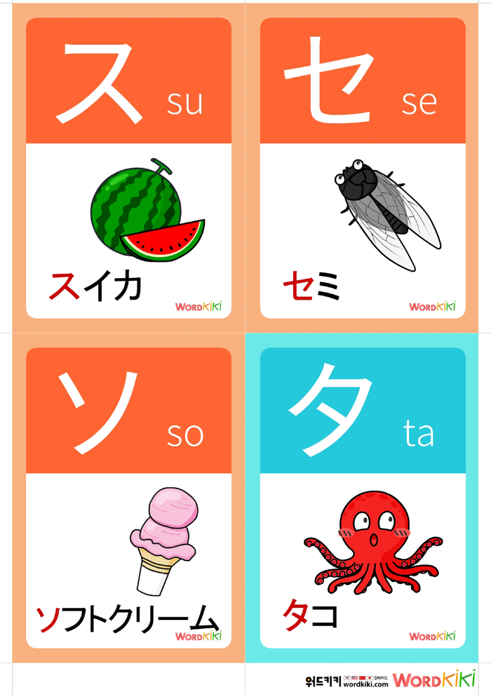 [가타카나 카드 12장] ① 일본어 가타카나+발음+이미지 플래시카드 4컷