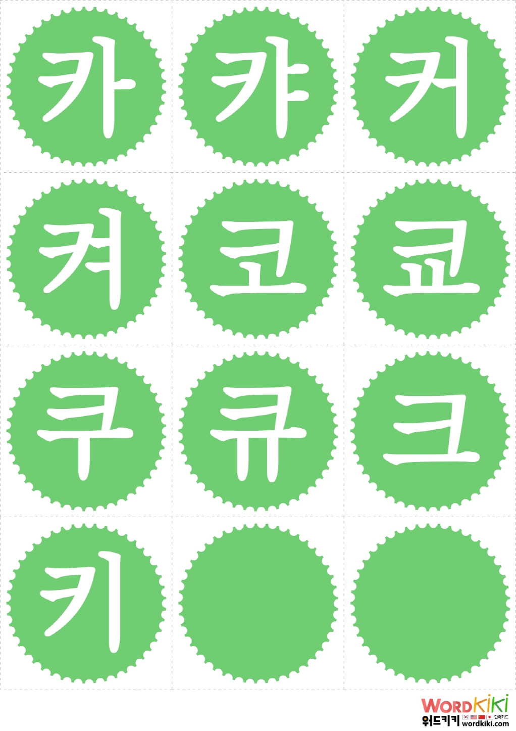 카 캬 커 켜 코 쿄 쿠 큐 크 키