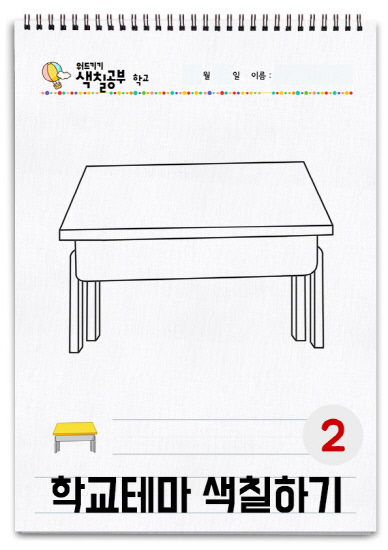 책상,의자,책장,사물함,게시판 등 학교과 관련된 색칠하기 도안이 8장