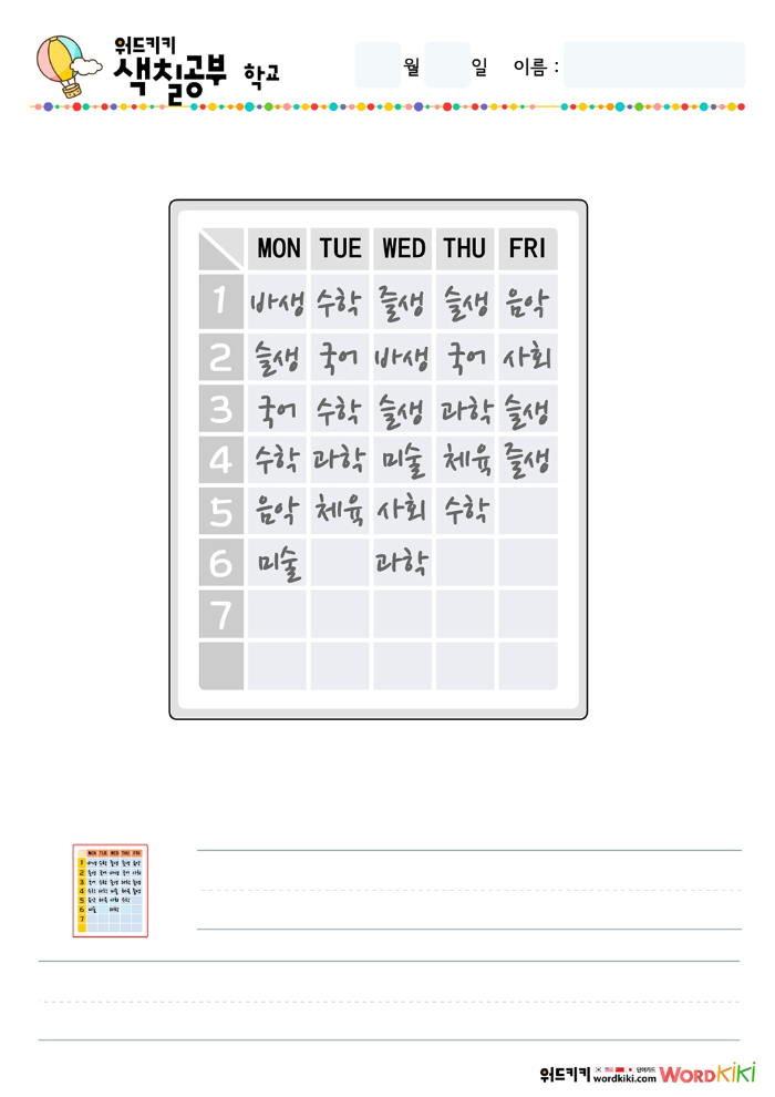 예쁘게 색칠하고, 그림에 맞는 단어도 써 보세요.