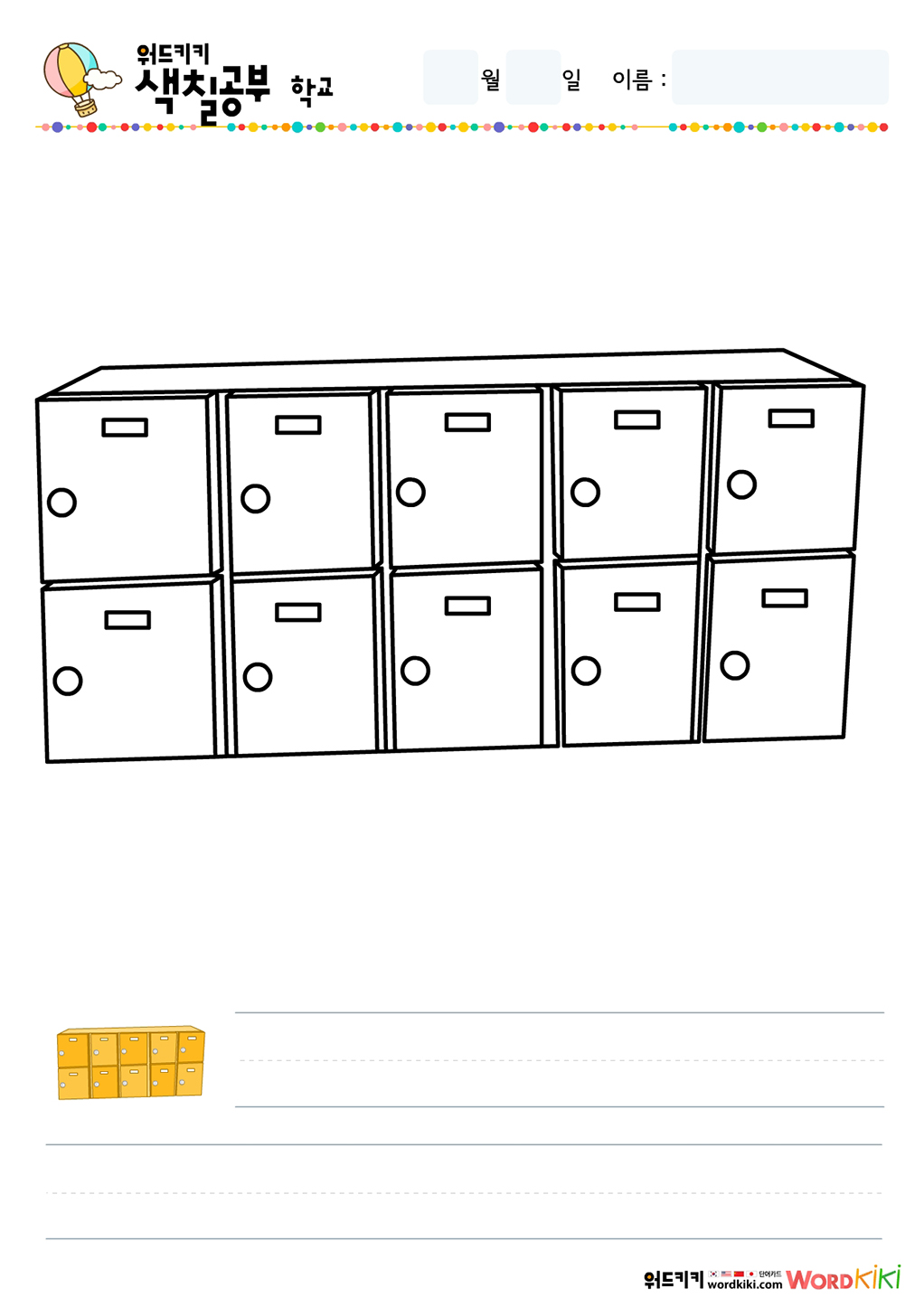 책상,의자,책장,사물함,게시판 등 학교과 관련된 색칠하기 도안이 8장
