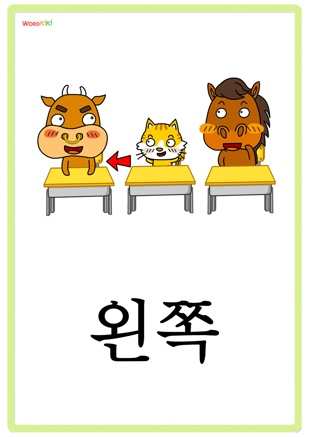 위,아래,앞,뒤,왼쪽,오른쪽,가운데,안,밖,옆,동쪽,서쪽,남쪽,북쪽,가깝다,멀다,사이,건너편