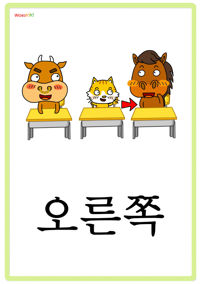 [한글단어카드 18장] 29 위치,방향 단어카드 – Korean Position Flashcard