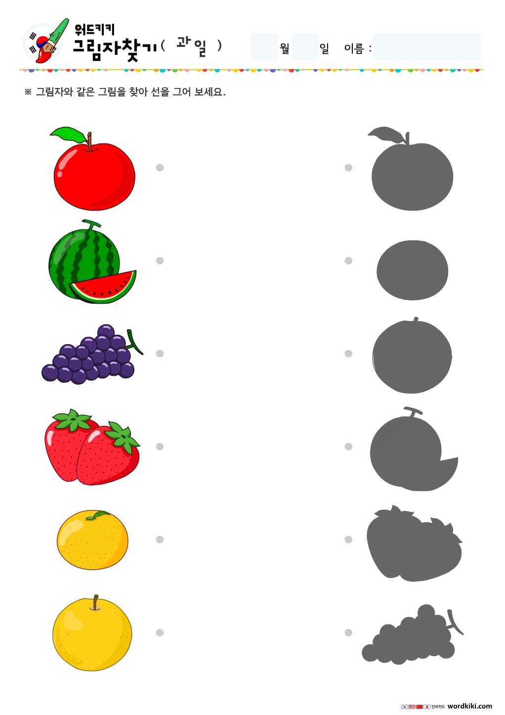 과일 테마 그림자 찾기, 그림자 연결하기