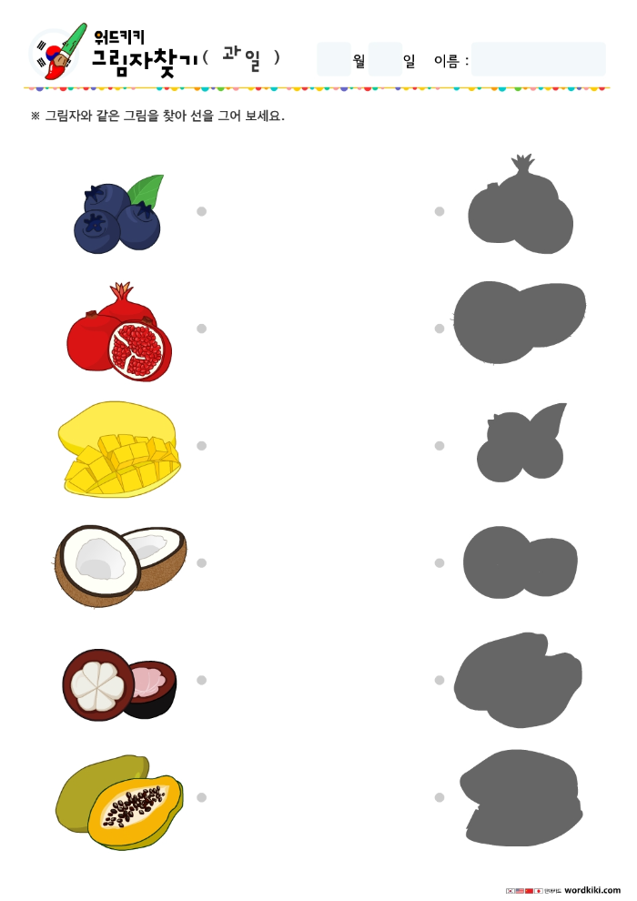 과일 테마 그림자 찾기, 그림자 연결하기