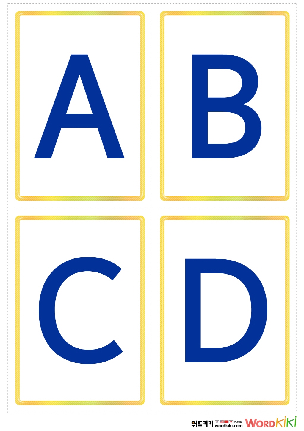 알파벳 대문자 플래시 카드를 프린트 후 코팅해서 사용 하세요.