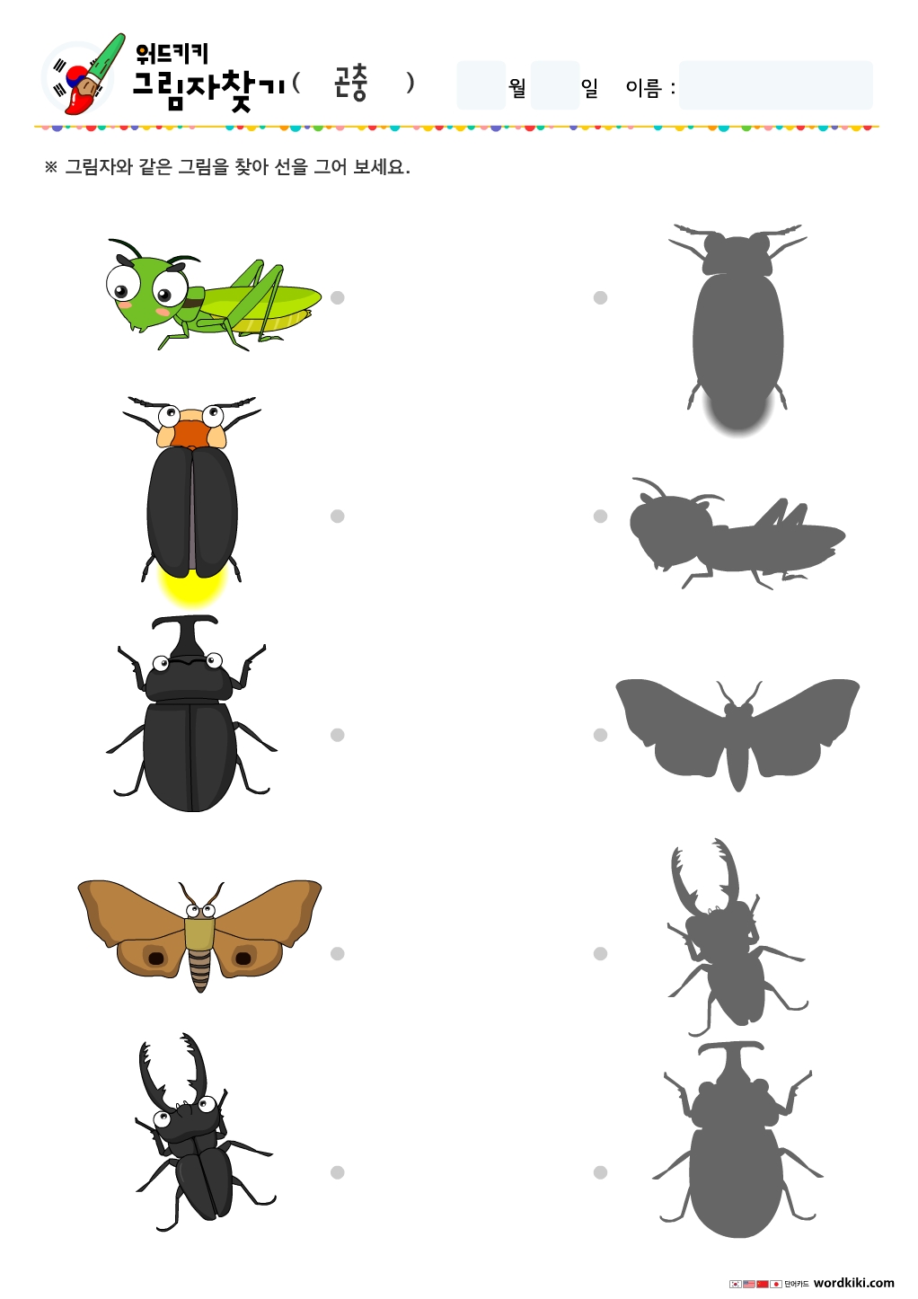 한글 곤충 그림자찾기/무료프린트학습지/엄마표활동지/어린이활동지/유아한글단어/ 곤충 그림자연결하기/엄마표한글학습/홈스쿨자료 곤충