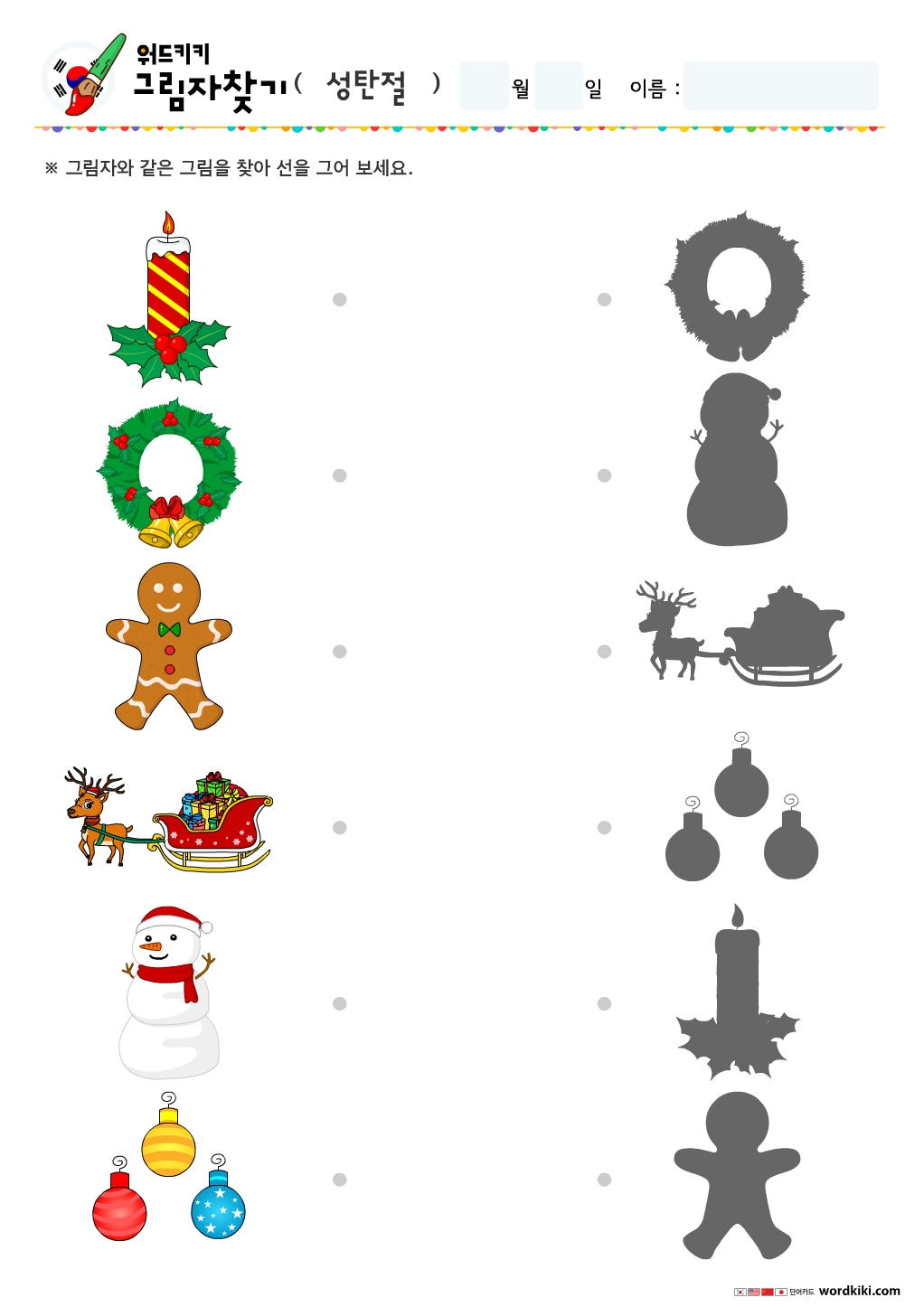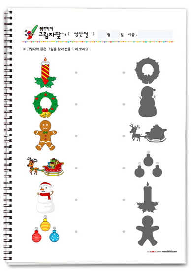성탄절,크리스마스 선긋기, 메리 크리스마스,산타클로스,크리스마스트리 선긋기, 캐럴,선물 선긋기, 크리스마스양말 선긋기, 크리스마스 카드,크리스마스 이브,루돌프선긋기, 사탕,종,양초 선긋기, 리스,생강빵,썰매 선긋기, 눈사람 선긋기, 장식 그림자찾기