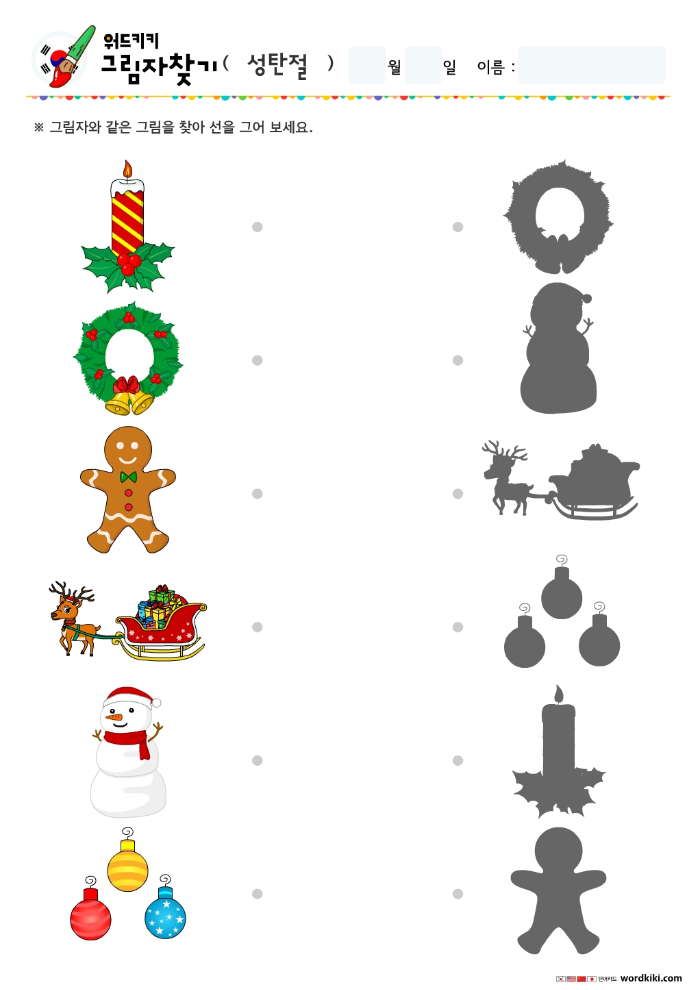 한글크리스마스그림자찾기/무료프린트학습지/엄마표활동지/어린이활동지/유아한글단어/크리스마스그림자연결하기/엄마표한글학습/홈스쿨자료크리스마스
