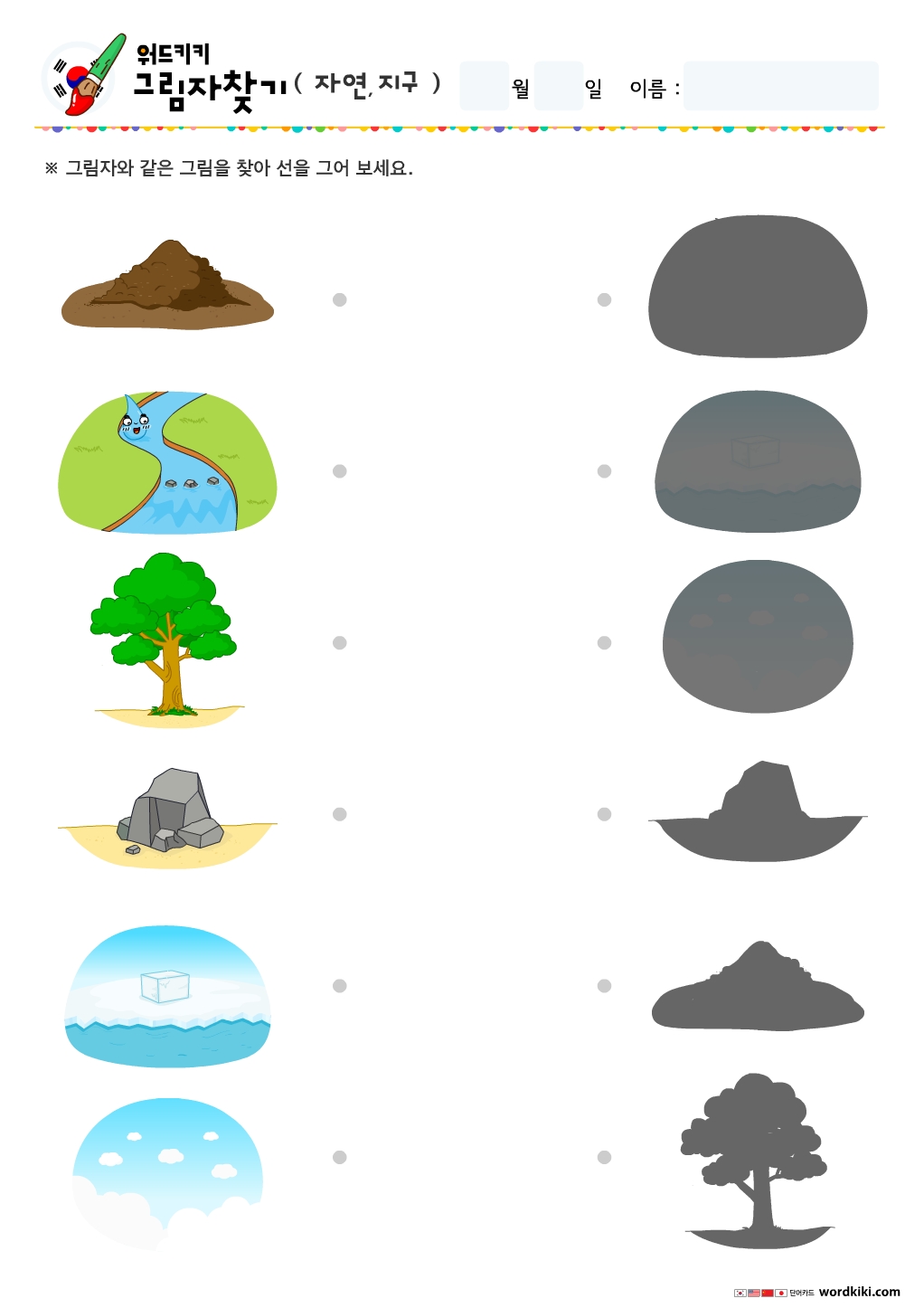 자연,지구 테마 그림자 찾기, 그림자 연결하기
