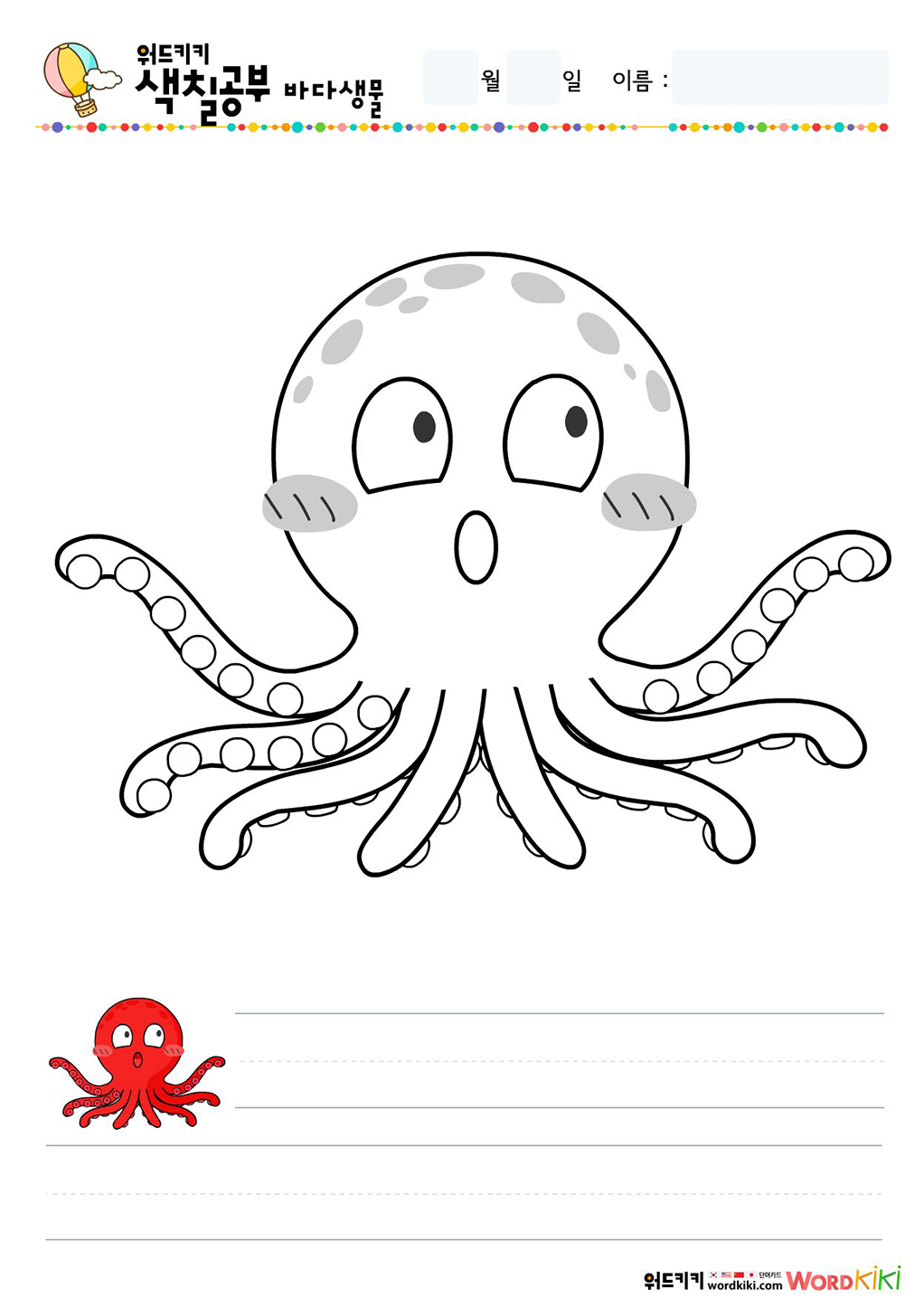 바다생물색칠하기 그림입니다.