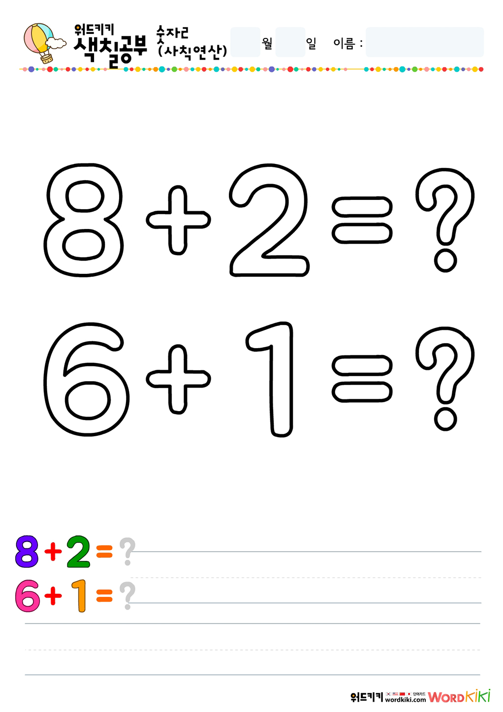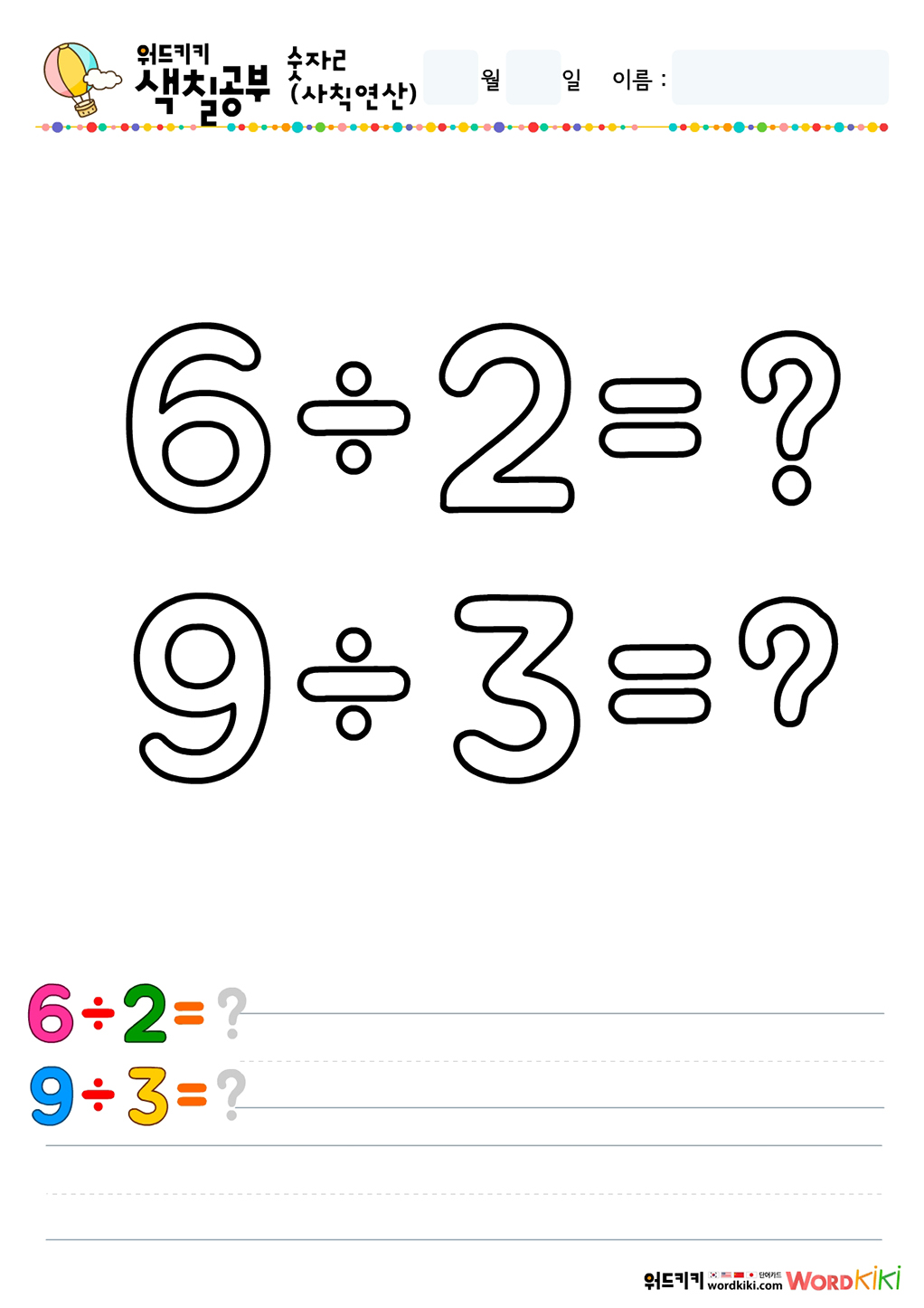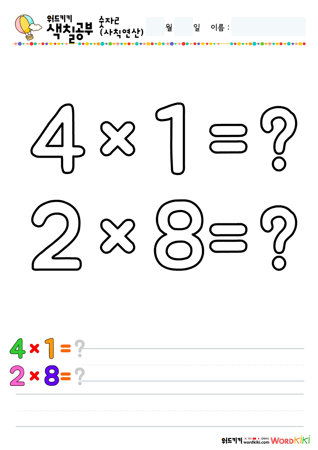 사칙연산색칠하기 그림입니다.
