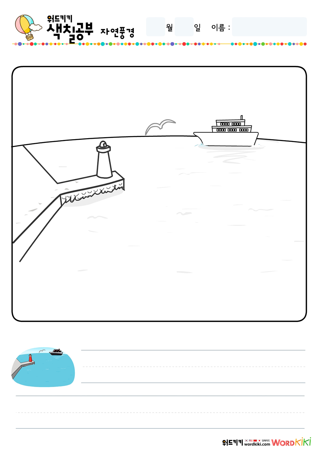 예쁘게 색칠하고, 그림에 맞는 단어도 써 보세요.