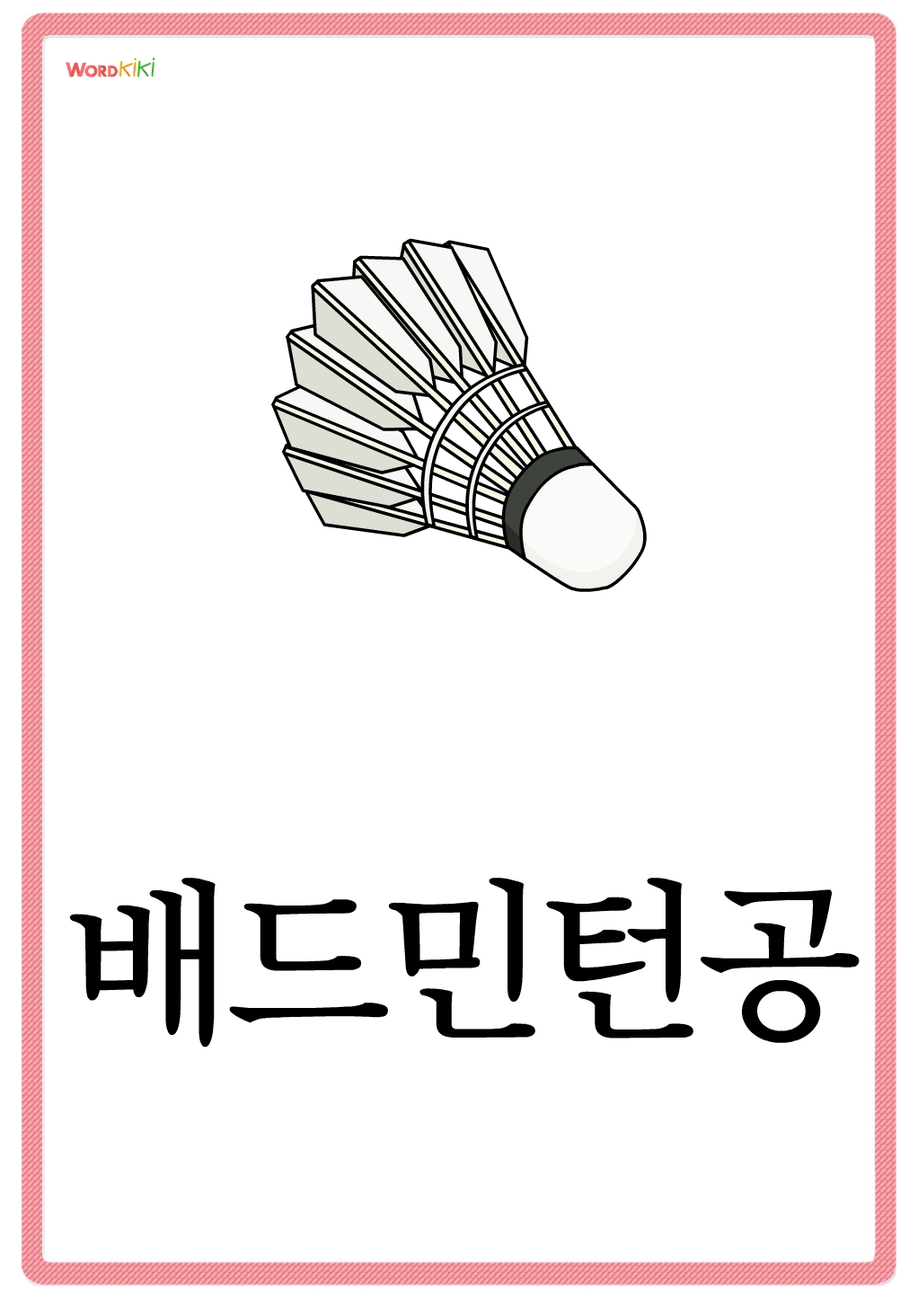축구공 단어카드, 농구공 단어카드, 배구공 단어카드, 테니스공 단어카드, 야구공 단어카드, 야구방망이 단어카드, 야구글러브 단어카드, 골프공 단어카드, 골프채 단어카드, 볼링공 단어카드, 볼링핀 단어카드, 미식축구공 플래시카드, 권투글러브 단어카드, 탁구채 단어카드, 배드민턴공 단어카드, 배드민턴라켓 단어카드
