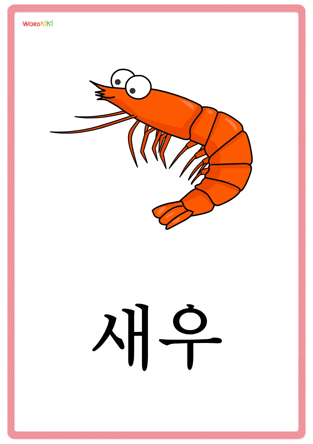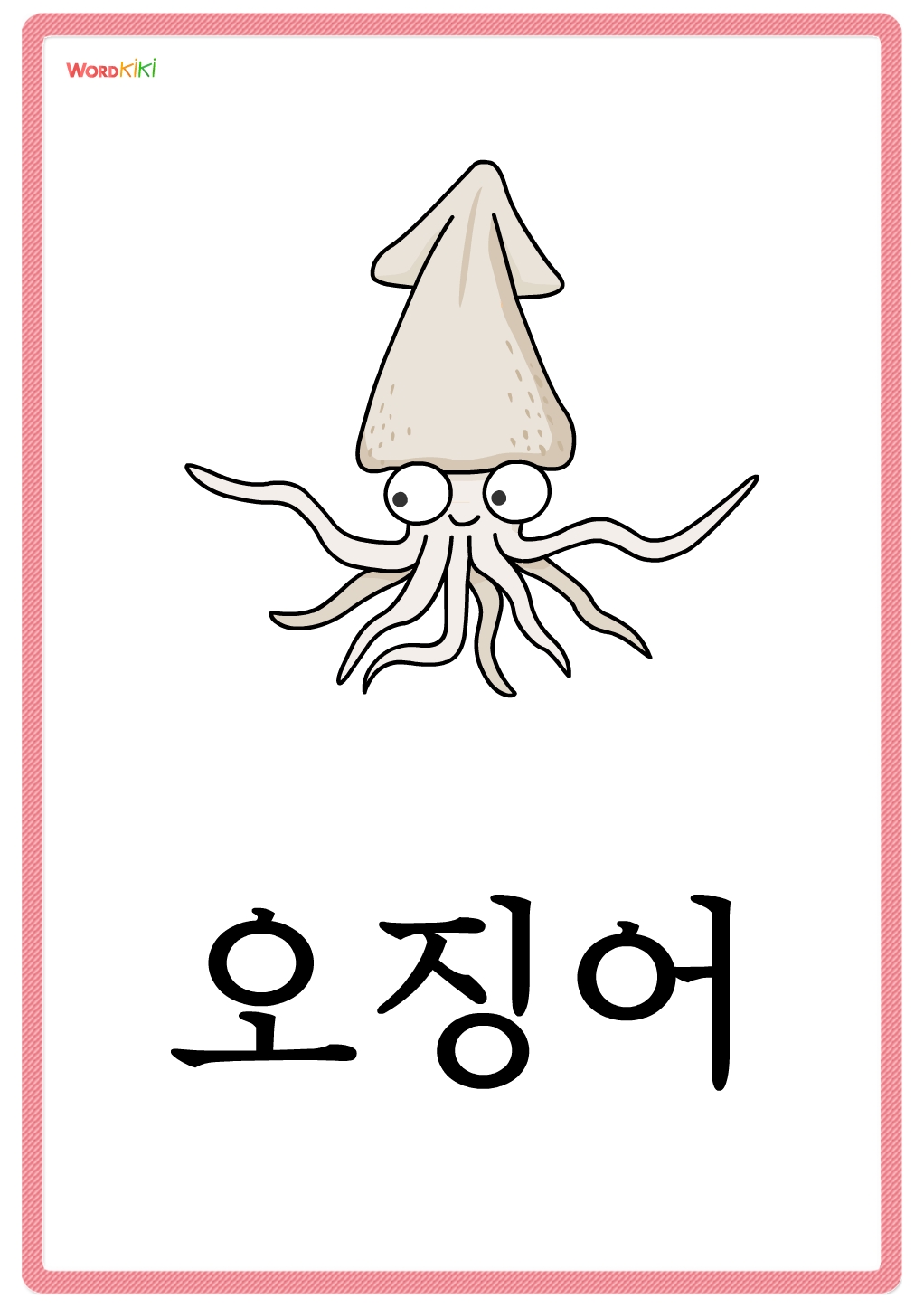 거북이 단어카드, 돌고래 단어카드, 조개 단어카드, 불가사리 단어카드, 게 단어카드, 문어 단어카드, 고래 단어카드, 오징어 단어카드, 해파리 단어카드, 소라 단어카드, 홍합 단어카드, 산호 단어카드, 물고기 단어카드, 새우 단어카드, 성게 단어카드, 장어 단어카드