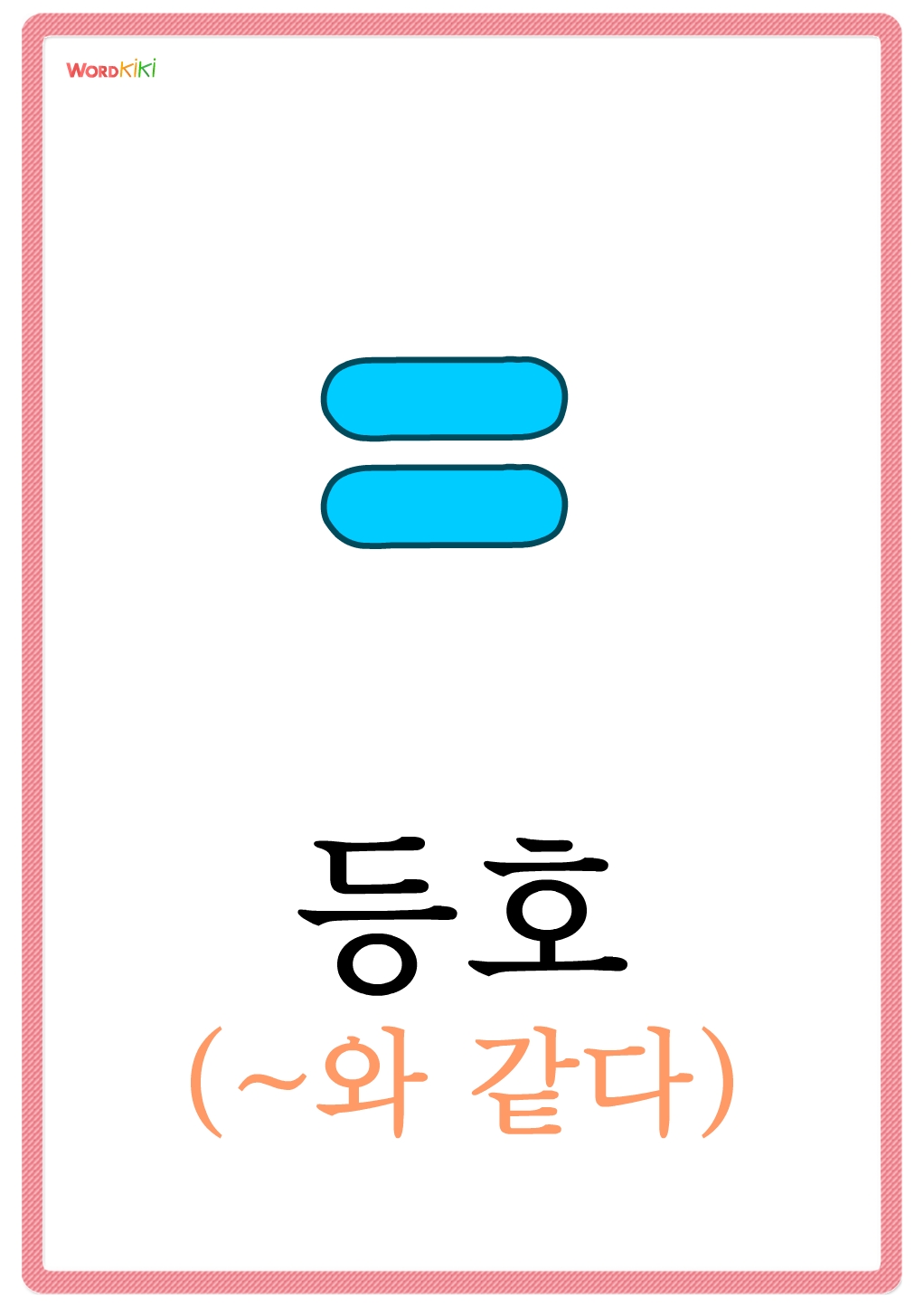 홀수 단어카드, 짝수 단어카드, 더하기 단어카드, 빼기 단어카드, 곱하기 단어카드, 나누기 단어카드, 등호(~와 같다) 단어카드, 부등호(~와 같지않다 ) 단어카드, 덧셈 단어카드, 뺄셈 단어카드, 곱셈 단어카드, 나눗셈 단어카드, 두배 단어카드, 평균 단어카드, 세다 단어카드, 계산하다 단어카드