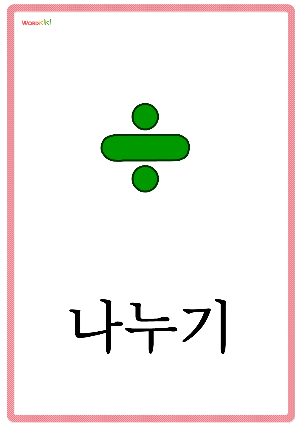 우리 아이 첫 한글 단어카드 중 사칙연산 테마로 사칙연산 단어를 익힐 수 있습니다.