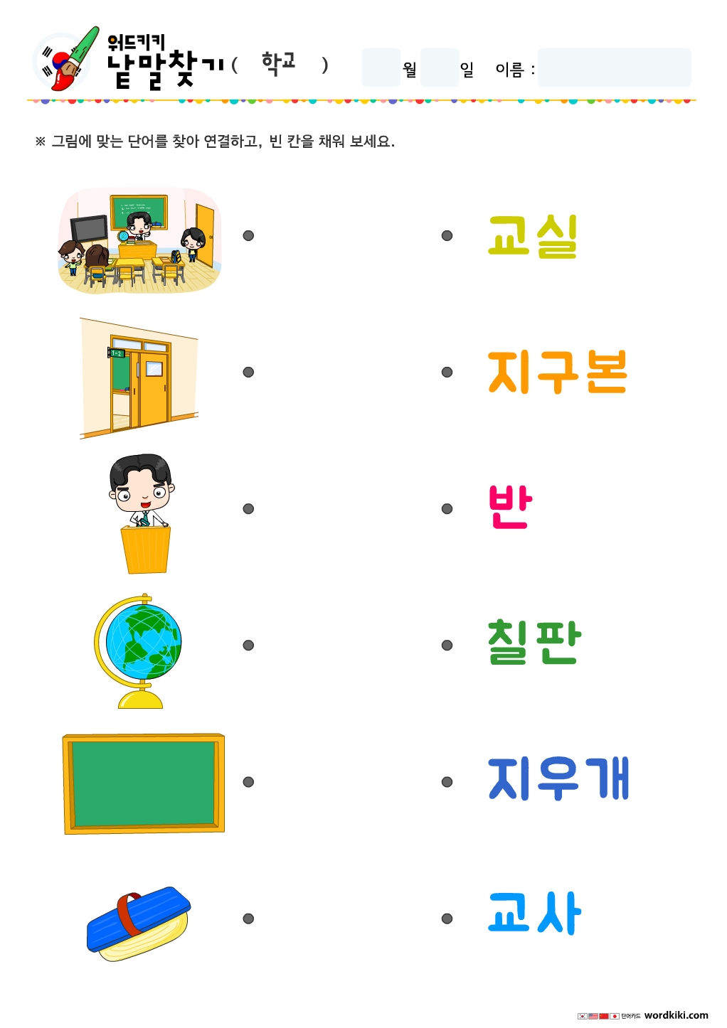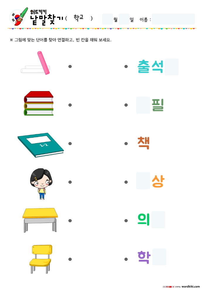 | [한글 활동지 6장] 25 학용품 단어연결하기 (0) | 2024.04.02 |