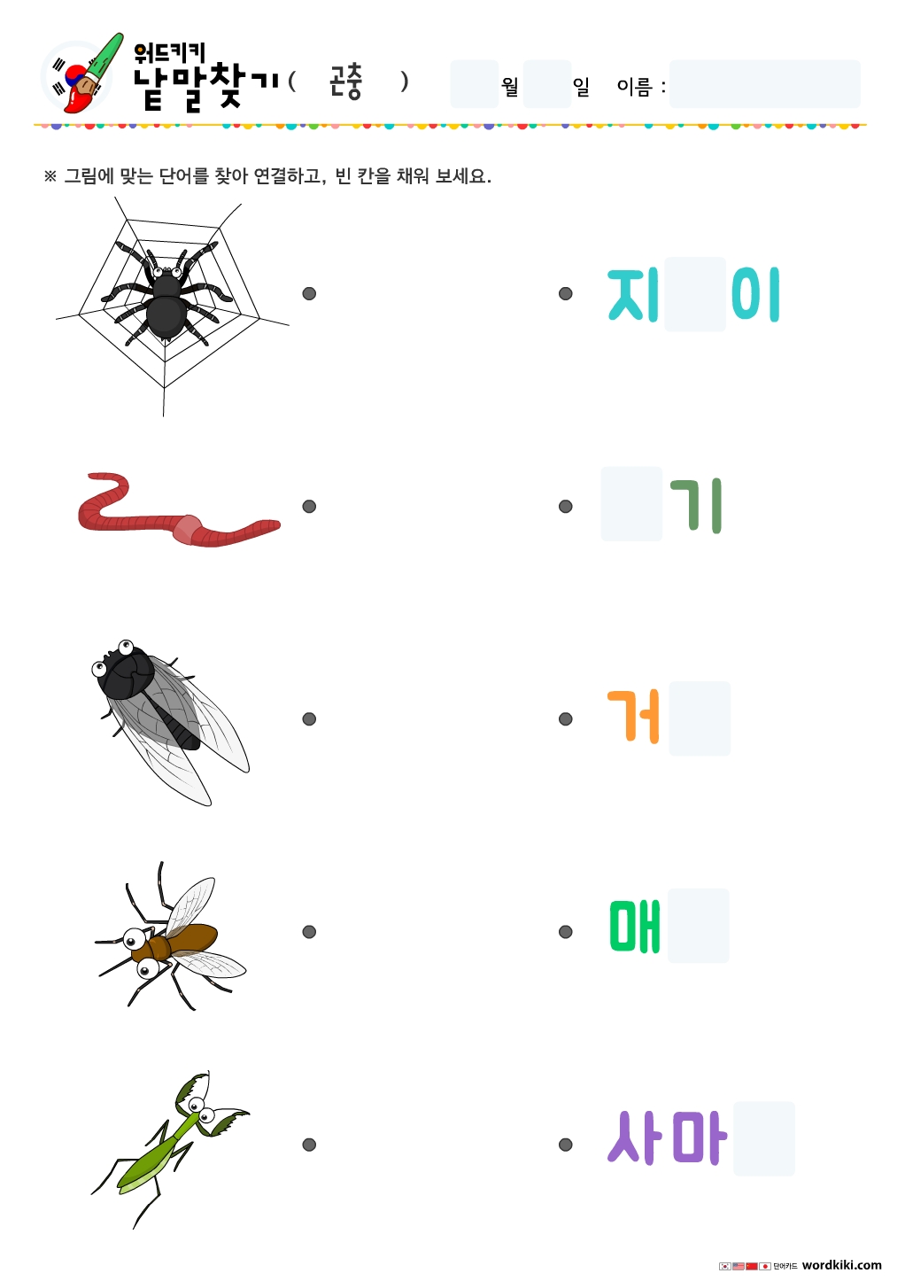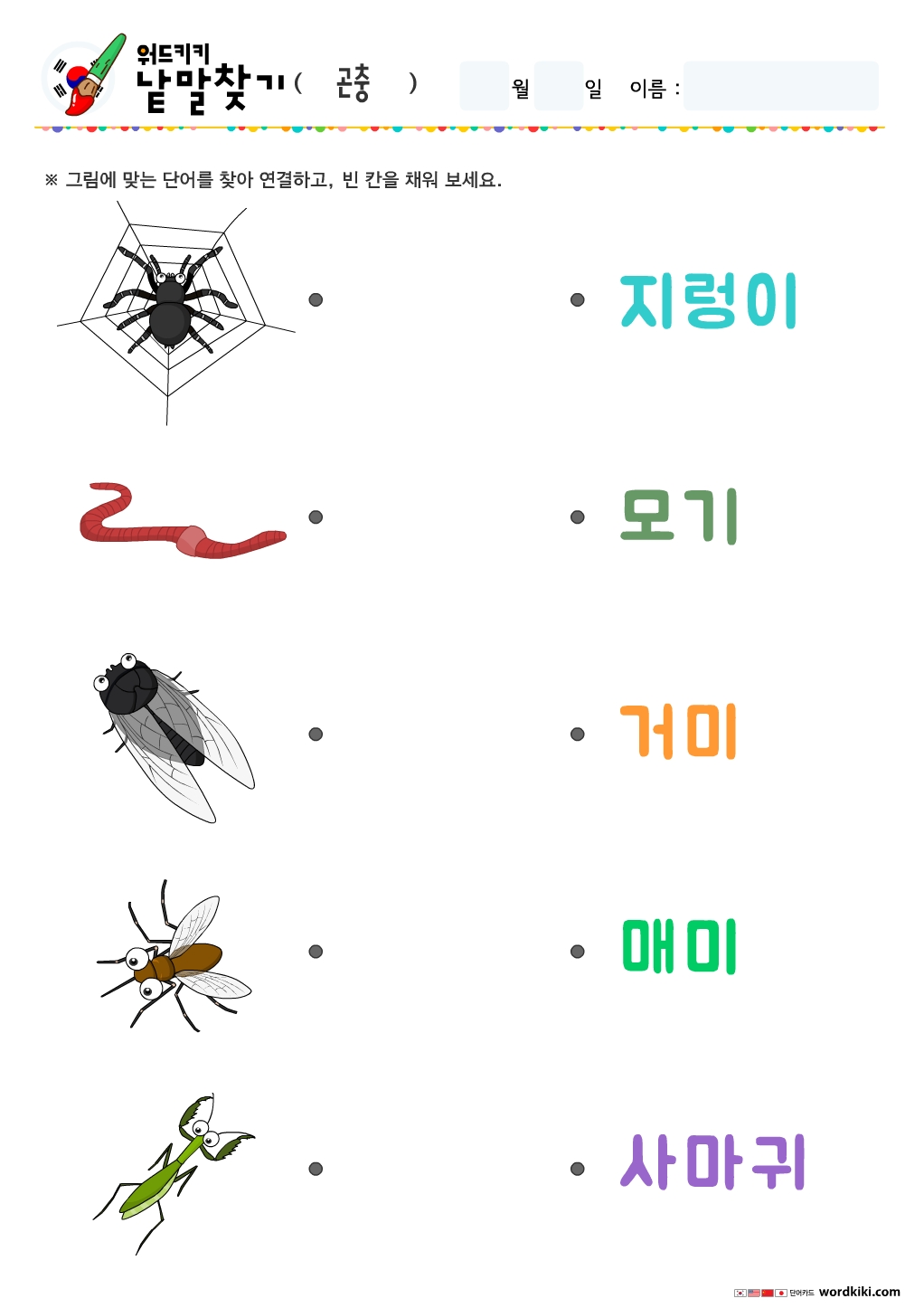 [한글 활동지 6장] 30 곤충 단어연결하기