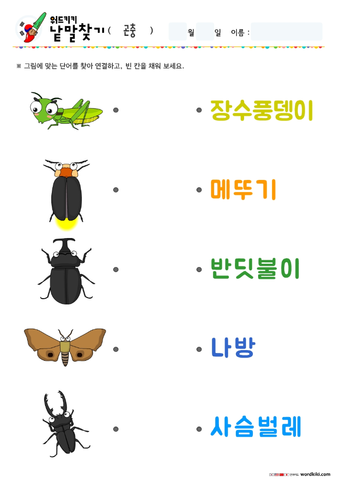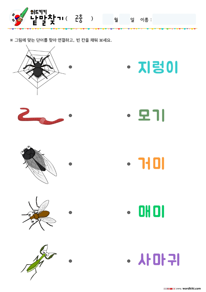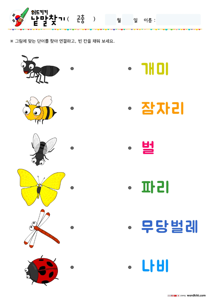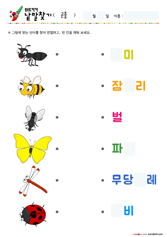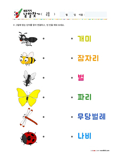 [한글 활동지 6장] 30 곤충 단어연결하기