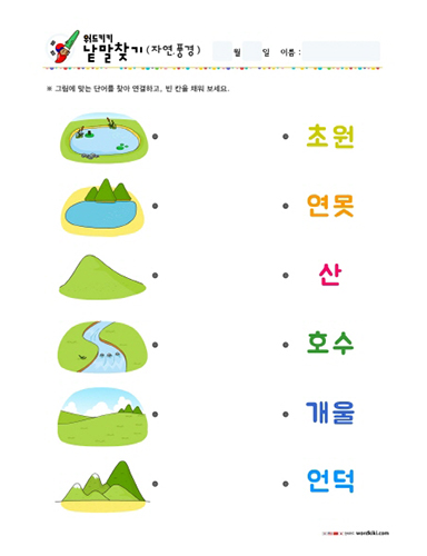 [한글 활동지 6장] 36 자연,풍경 단어연결하기