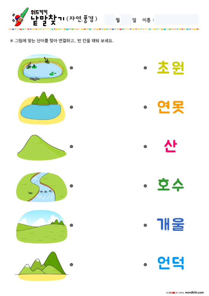 [한글 활동지 6장] 36 자연,풍경 단어연결하기