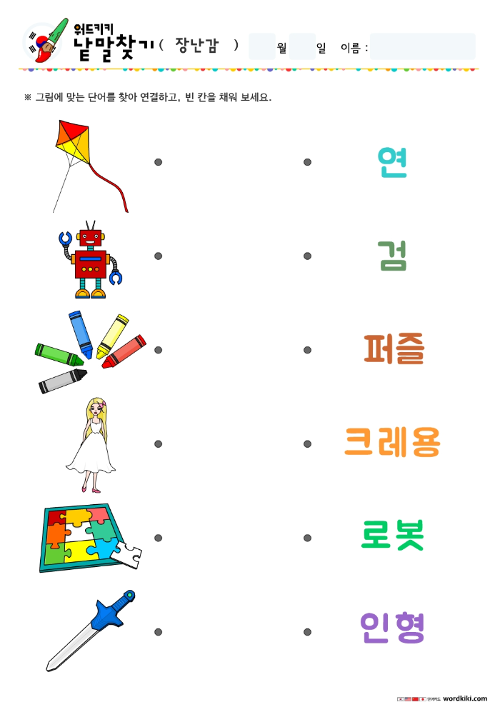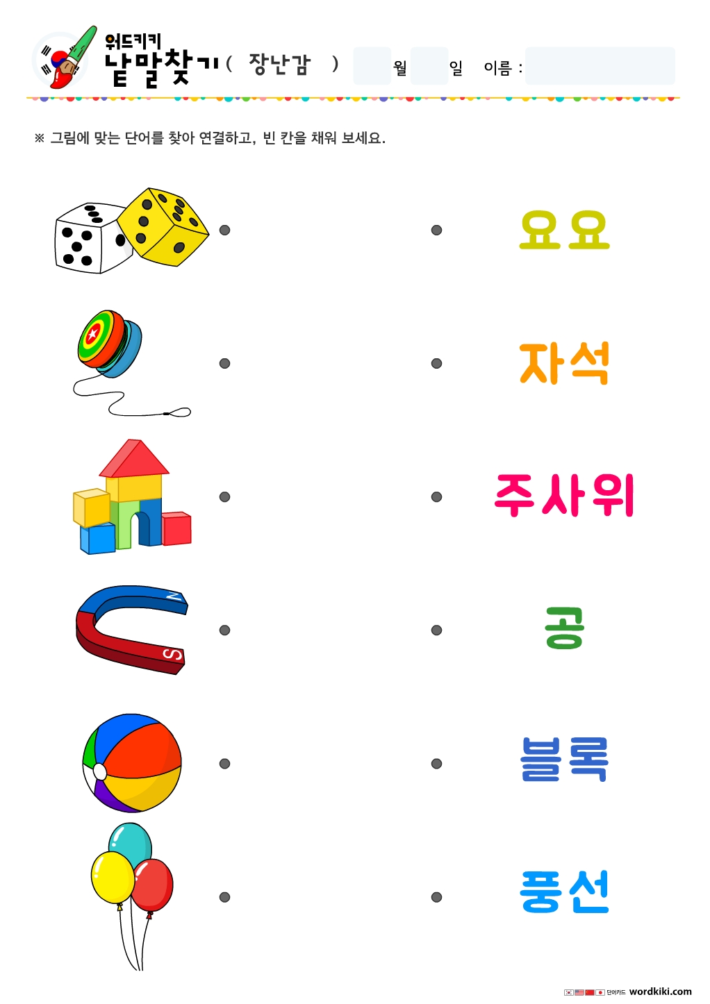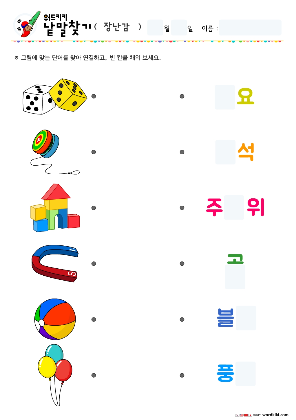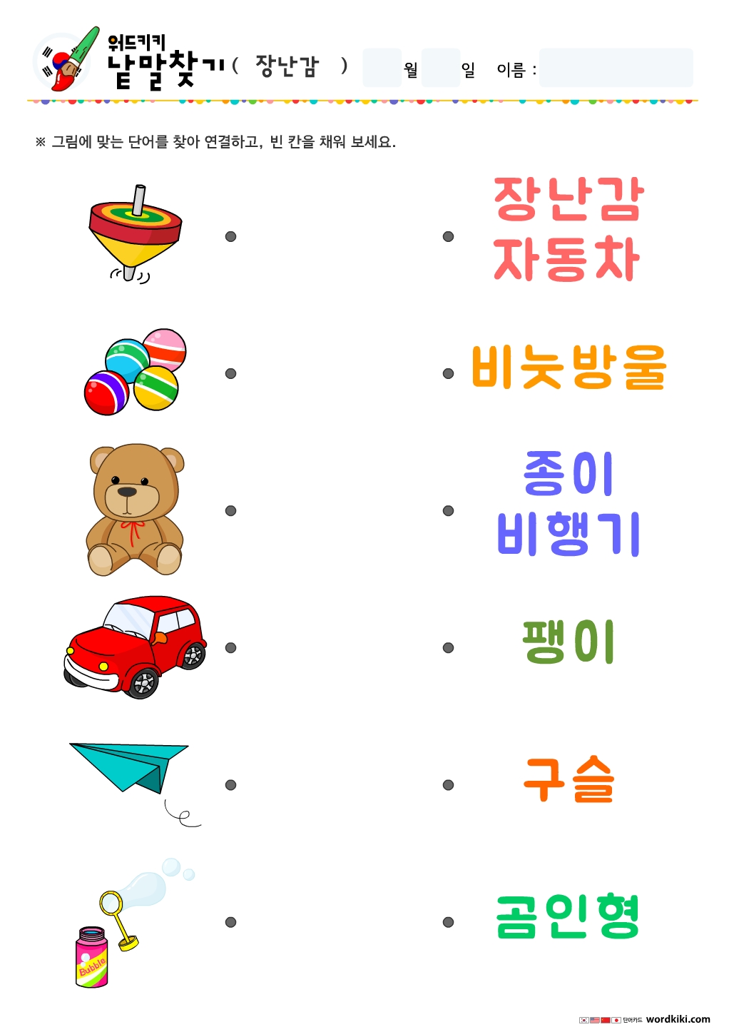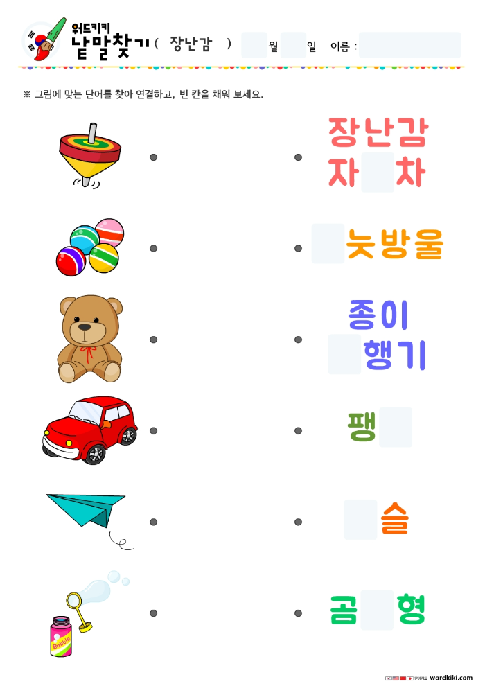 [한글 활동지 6장] 37 장난감 단어연결하기