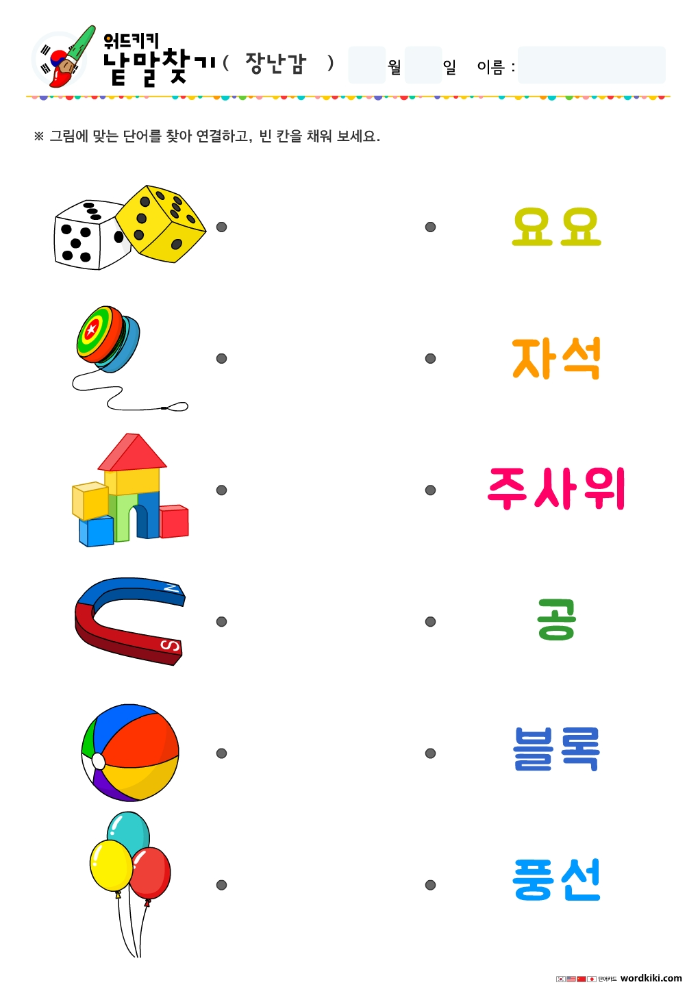 장난감 그림단어연결하기