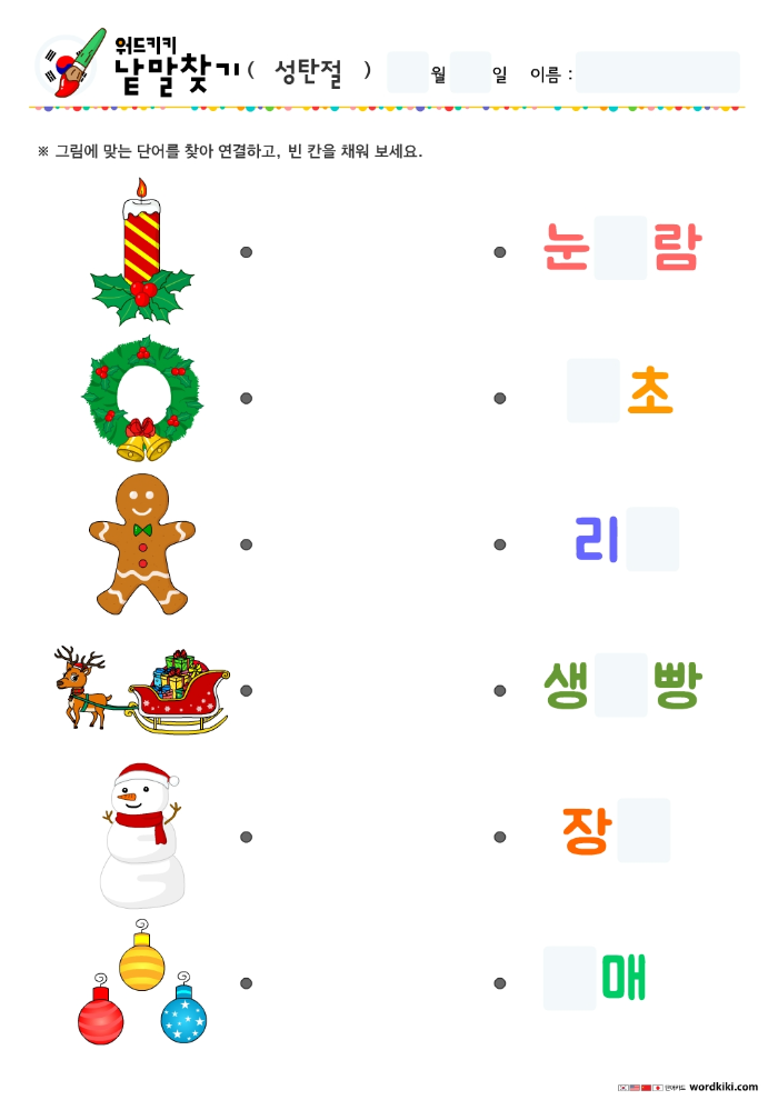 크리스마스 단어그림 연결하기/ 성탄절 낱말찾기.