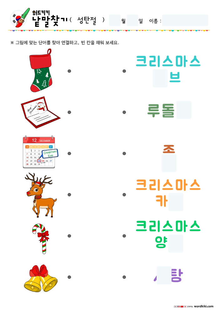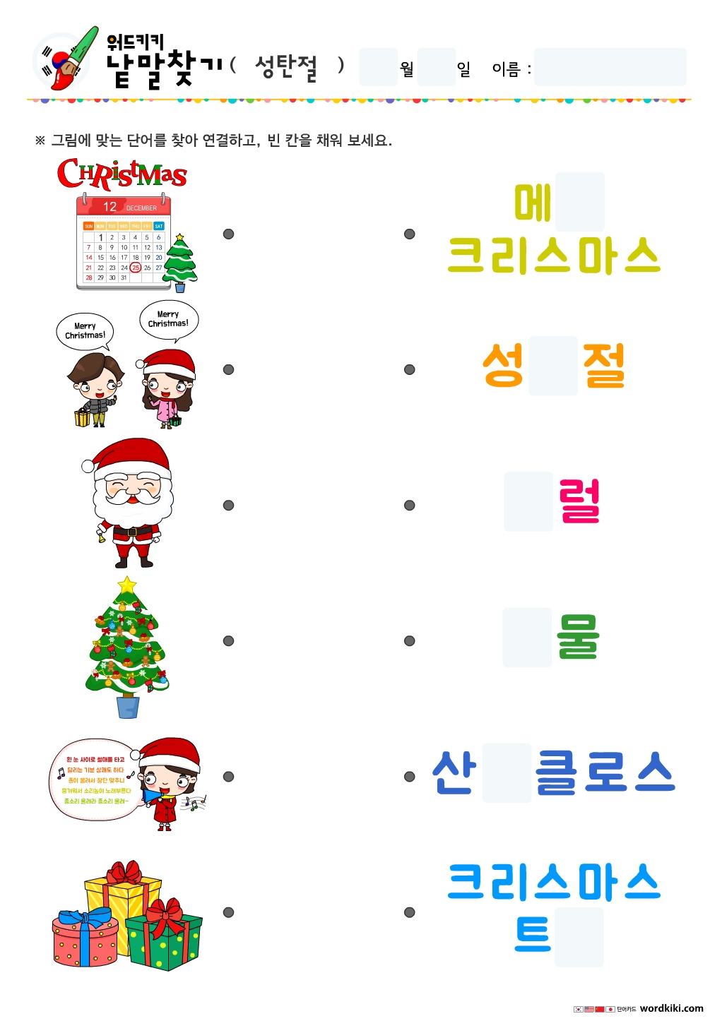 크리스마스 단어그림 연결하기/ 성탄절 낱말찾기.