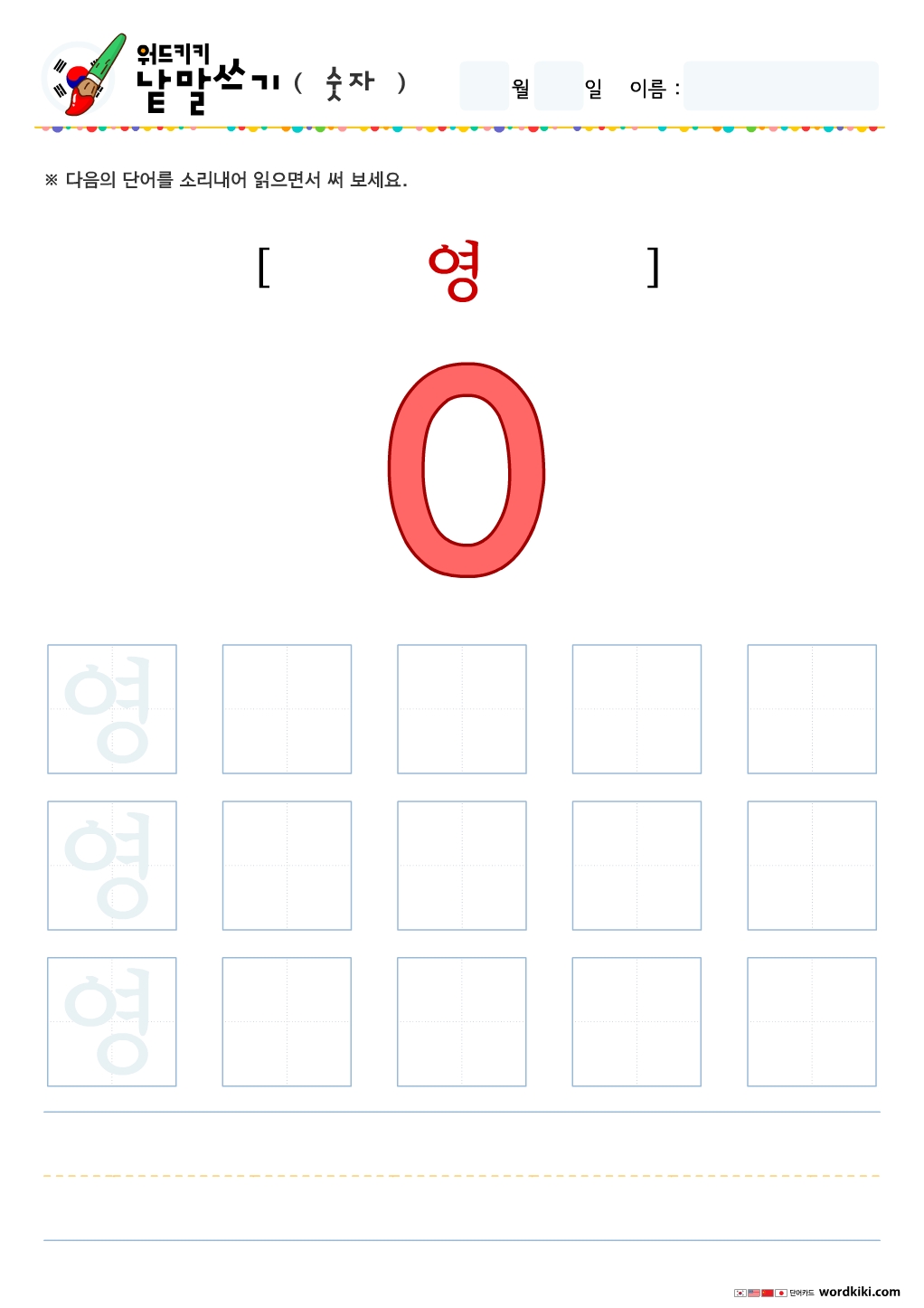 [한글단어쓰기 11장] 04-1 한국어 숫자 단어쓰기 (큰글자) – 숫자 0 부터 10까지