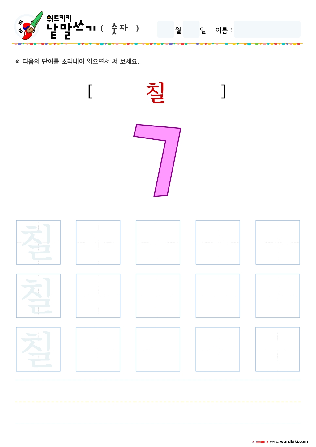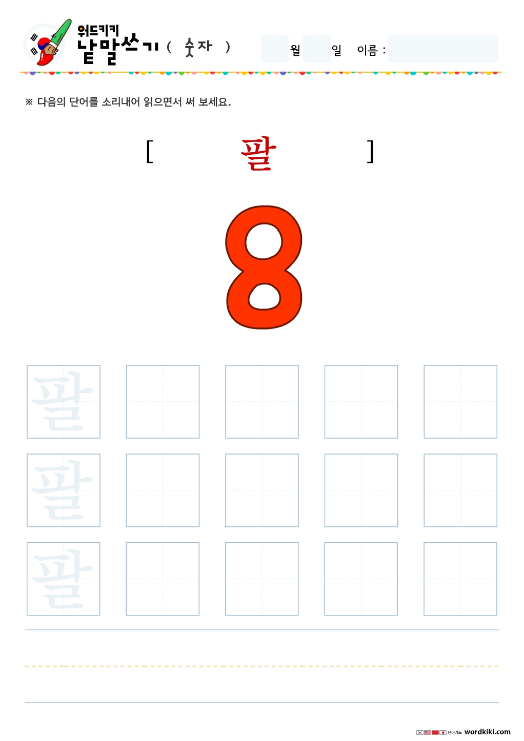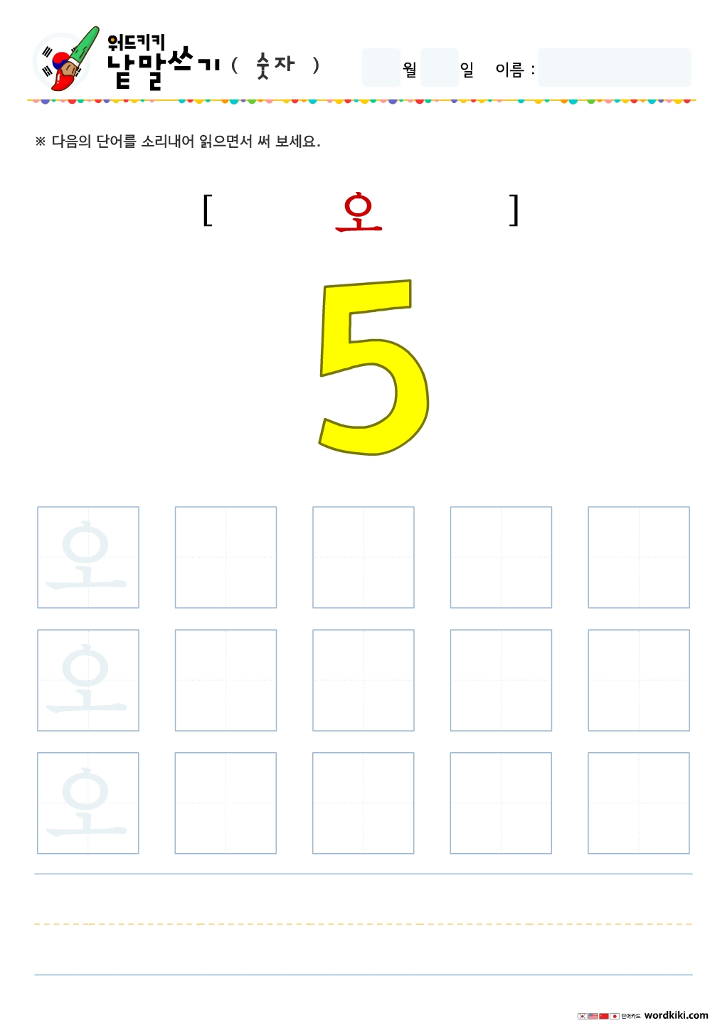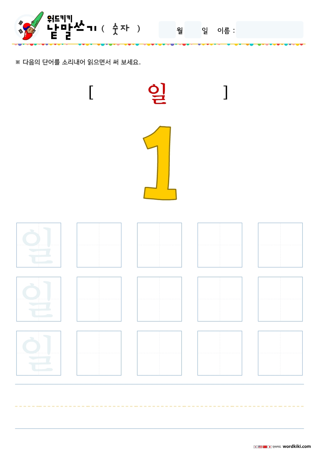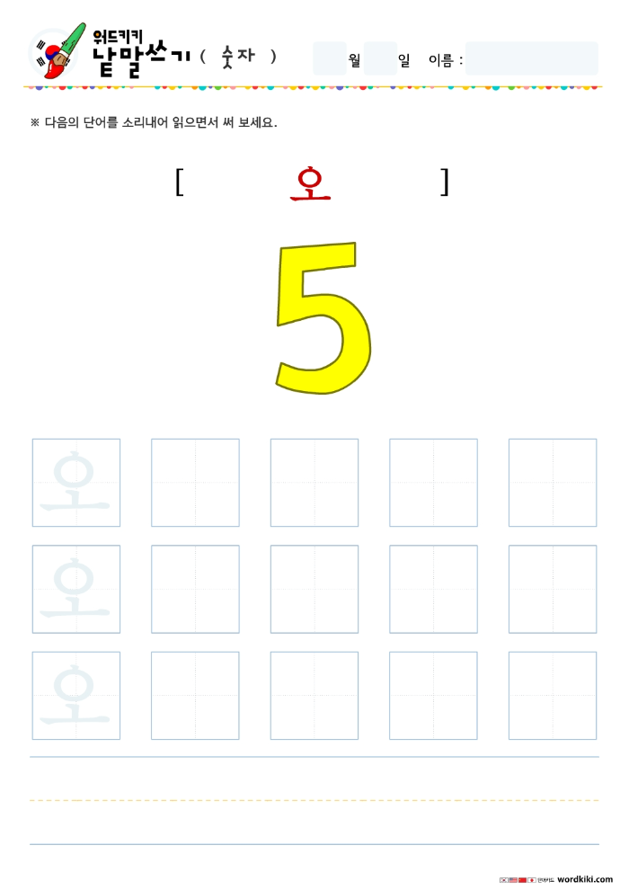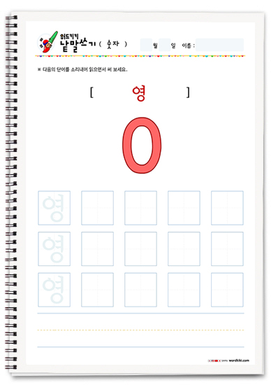 한글단어쓰기 숫자 단어 따라쓰기